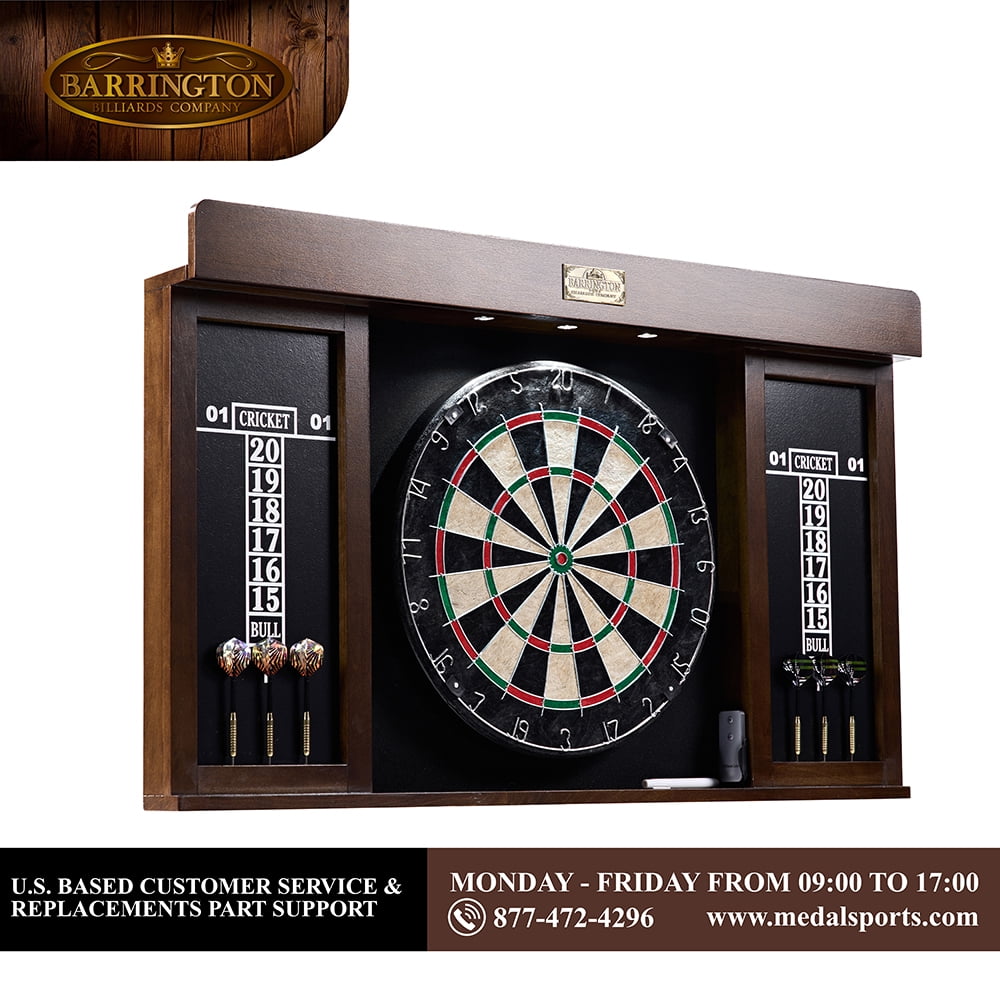 Bristle Dartboard Cabinet Set, LED Lights, Official Size Dart Board, by Barrington Billiards