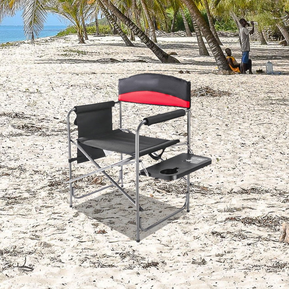 Camping Chair, Directors Chair with Side Table Storage Pockets and Carry Straps for Cup Holder, Padded Folding, Supports 400lbs