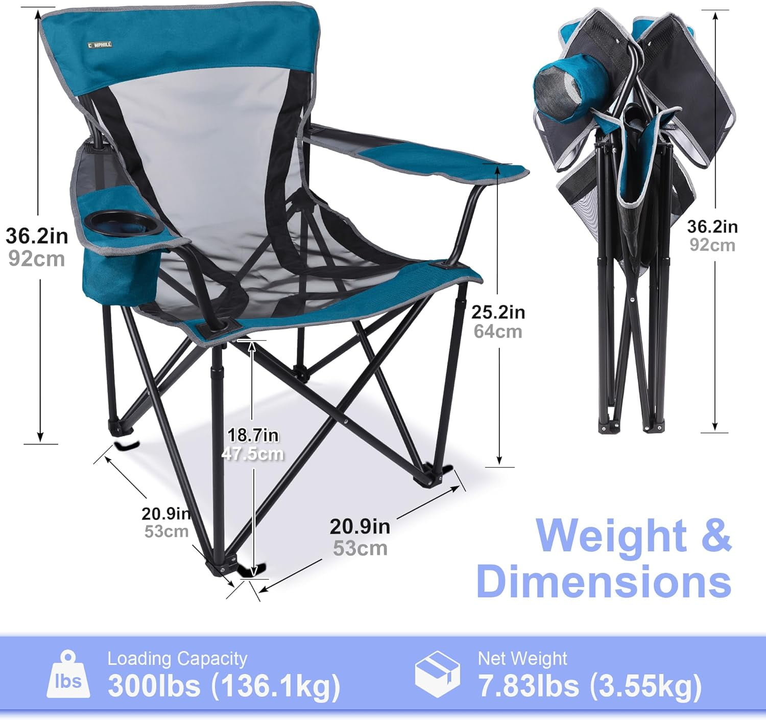 Camphor Designs Heavy Duty Portable Folding Camping Chair for Adults