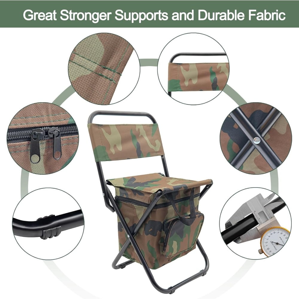 Camouflage Foldable Fishing Chair with Cooler Bag,Lightweight Hunting Chair,Folding Stool Seat with Backrest Stool for Camping,Fishing,Hiking,Outdoor Sketching