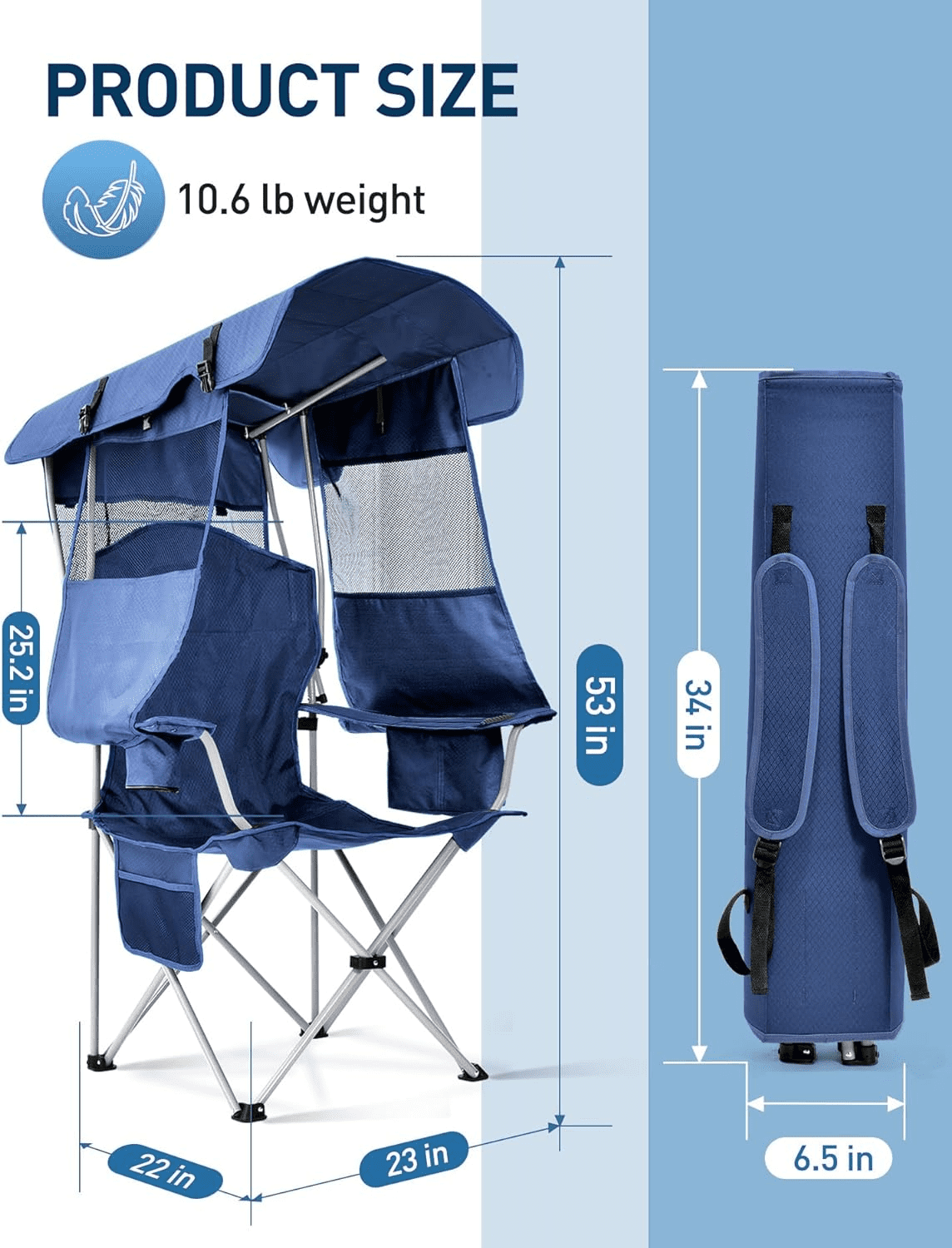 $94.59Original price was: $94.59.$63.63Current price is: $63.63.☀️The Hot Summer Weather Is the Perfect Time for Outdoor Camping! We Recommend this Summer Camping Chair to Make Your Camping Trip More Comfortable. Coolness is with you —- Cooler Bag This summer camping chair comes with a cool bag design, which is convenient and practical, so that your summer drinks taste cool and stay cool forever. Lightweight material, folding design, no burden to carry, suitable for camping, fishing, picnics and other outdoor activities. Carry your leisure time —- 360° Sunshade This summer camping chair is comfortable to sit on, and the 360° all-round sunshade design creates a private shade space for you to enjoy outdoor life. 🚵 Get yours today and enjoy the great outdoors in style and comfort! 🎁 Quality Assurance, Lifetime Warranty, Free Returns and Quick Response Customer Service – Providing You with the Best Shopping Experience and After-sales Protection 🎁 Gifts for Family and Friends – such as Giving them this Cost-effective Summer Camping Chair during the Upcoming Holidays 🎁 Cooler Bag Design – Keep Drinks Cool and Quench Your Thirst 🎁 Foldable Design, Flexible Steel Frame, Free Backpack Strap – You Can Take It Anywhere You Want to Go 🎁 Add Side Visors and tailgate – 360-degree Sunshade 🎁 Made of 600D Oxford cloth and the strongest steel frame – wear-resistant fabric and strong load-bearing capacity allow you to use it with peace of mind 🎁 One of the 4 Strongest Sun-shading Fabrics – Oxford – Really Shields You from the Sun’s Rays 🎁 Designed with Cup Holders and Side Storage Pockets, which Can Store Water Bottles, Sunglasses, Magazines and Other Items – Providing Abundant Storage Space 🎁 Removable Top Sun Visor – Can Also Be Used When You Want to Sunbathe 🎁 Lightweight, only 10.6 lbs. View More Details