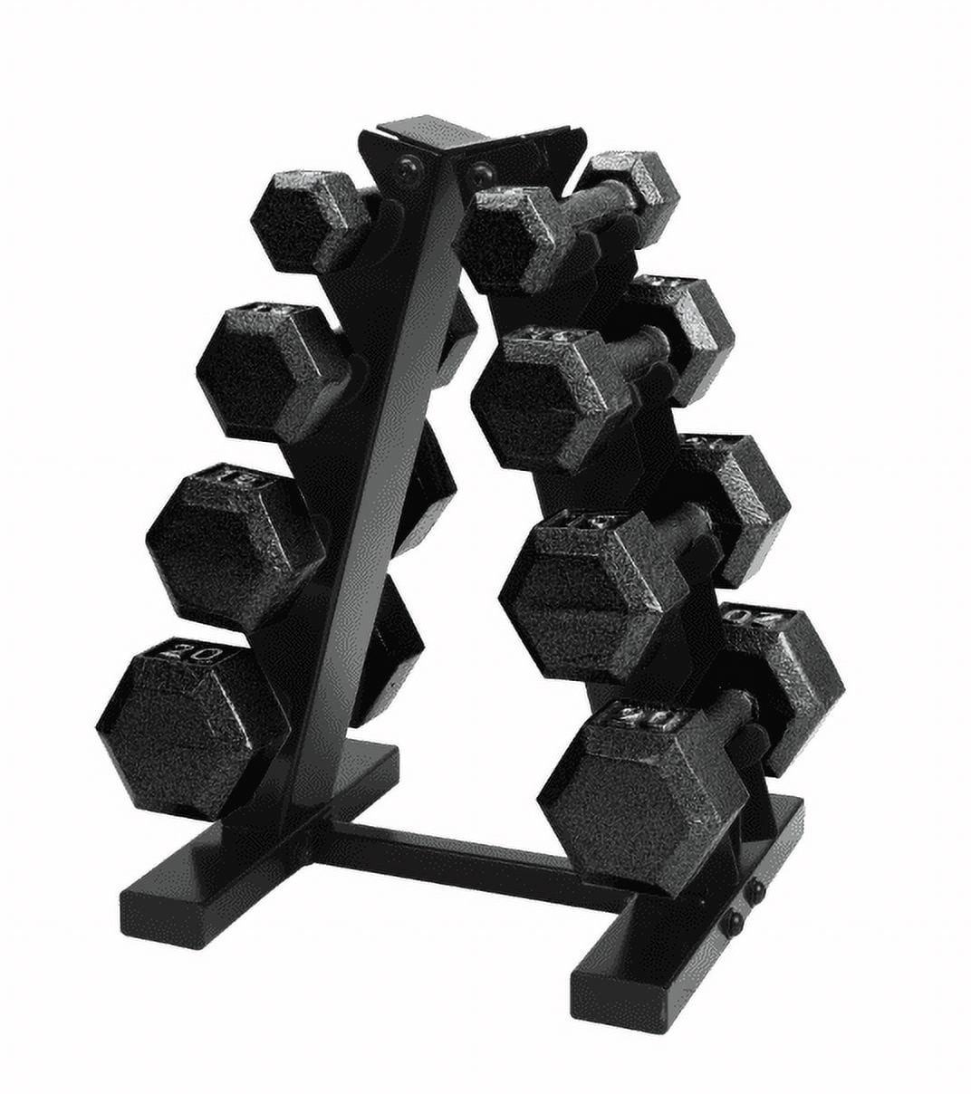 $172.00Original price was: $172.00.$110.94Current price is: $110.94.No home gym is complete without a variety of dumbbells and the CAP 100-pound Cast Iron Hex Dumbbell Weight Set with Rack gets you what you need. This set comes with a variety of weights and can be used for both upper and lower body while targeting specific muscle groups. The CAP Cast Iron Hex Dumbbells have a medium depth knurling, which provides essential grip and security during use, and feature a hexagonal shape that prevents rolling and allows for easy storage. Included in the set is a 5-pound dumbbell pair, a 10-pound dumbbell pair, a 15-pound dumbbell pair, a 20-pound dumbbell pair, and a 20-inch, A-frame, dumbbell rack for easy storage. Lift, gain, and repeat with the CAP 100-pound Cast Iron Hex Dumbbell Weight Set with Rack.