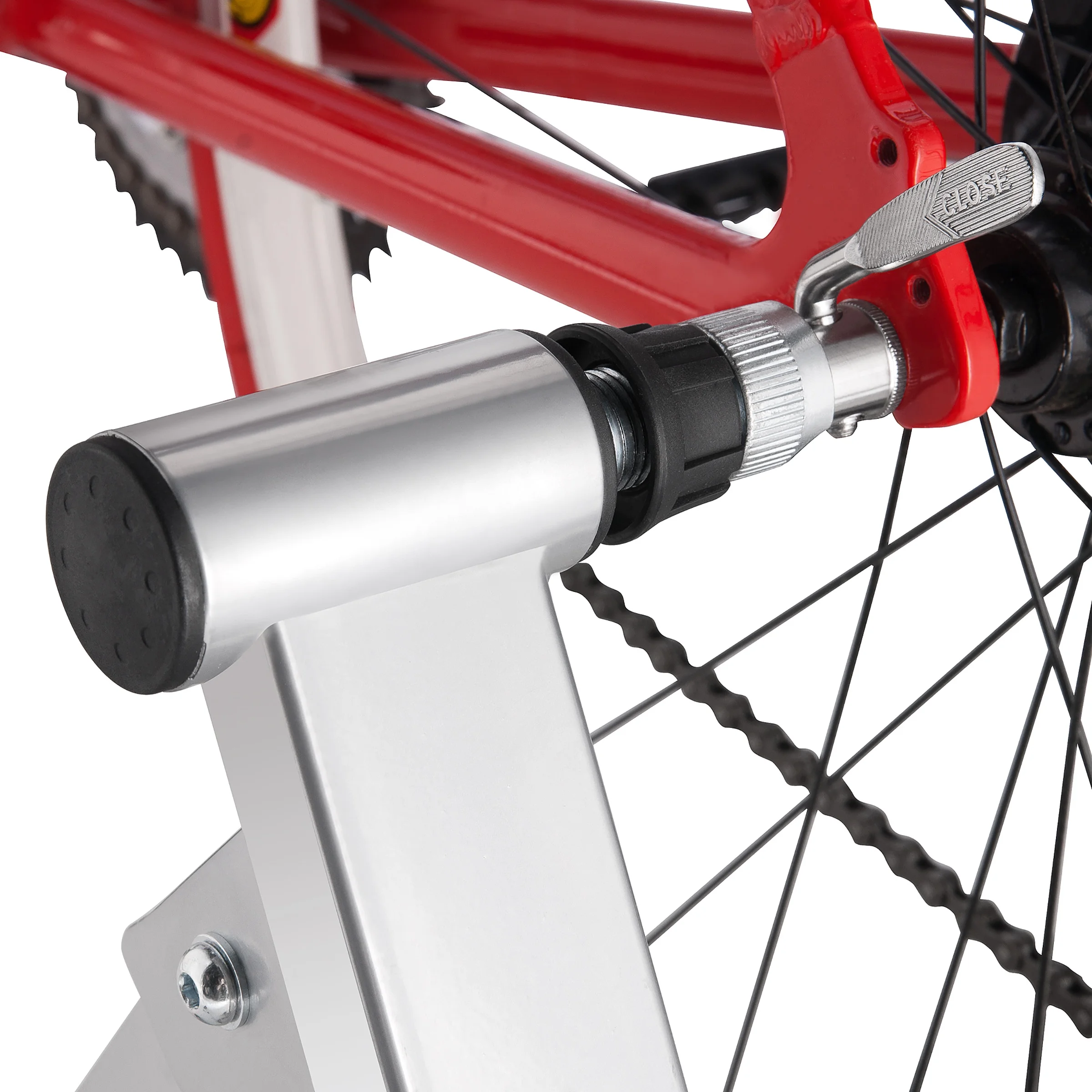 $61.77Original price was: $61.77.$14.28Current price is: $14.28.Convert any bike with 700cc, 26-inch, or 27-inch tires into a stationary bicycle with the Bike Trainer Stand by Bike Lane. If your bicycle has a quick release rear axle it can be mounted on this stationary bike stand using the locking nuts on each side of the wheel for daily workouts pedaling in the comfort of your own home. This stationary bike converter comes with a magnetic roller that adjusts for many levels of resistance, a handlebar resistance controller to dial in the perfect amount of contention, a front tire riser, a wide stance frame for stability, and a replacement skewer for the rear axle – everything you need to keep putting miles on your bike all year long.