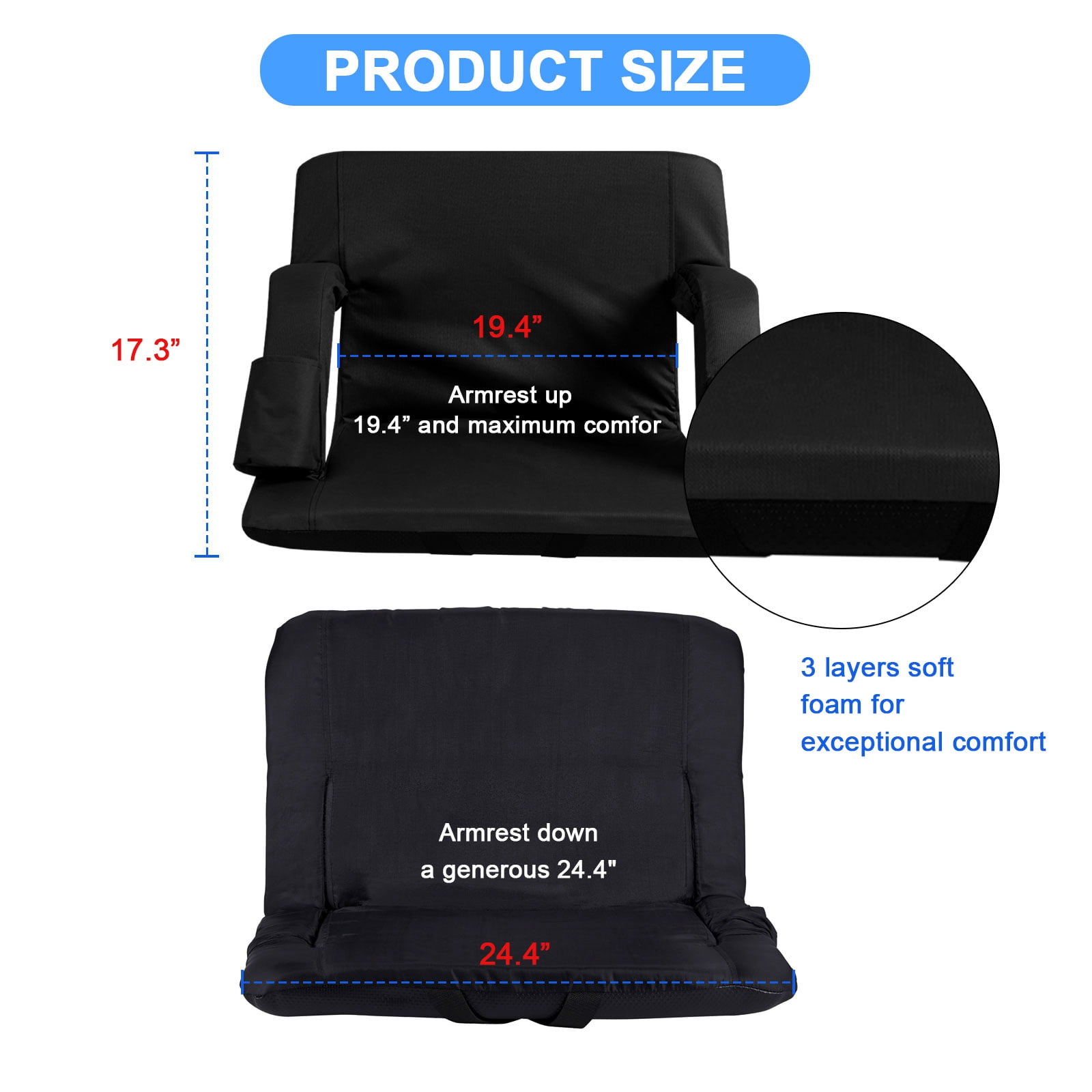 24.4″ Wide Stadium Seat For Bleachers With Back Support 6 Reclining Options&Invert Armrest,Folding Bleacher Chair Comfortable Cushion,Water-Resistant,Portable For Sporting Events,Camping