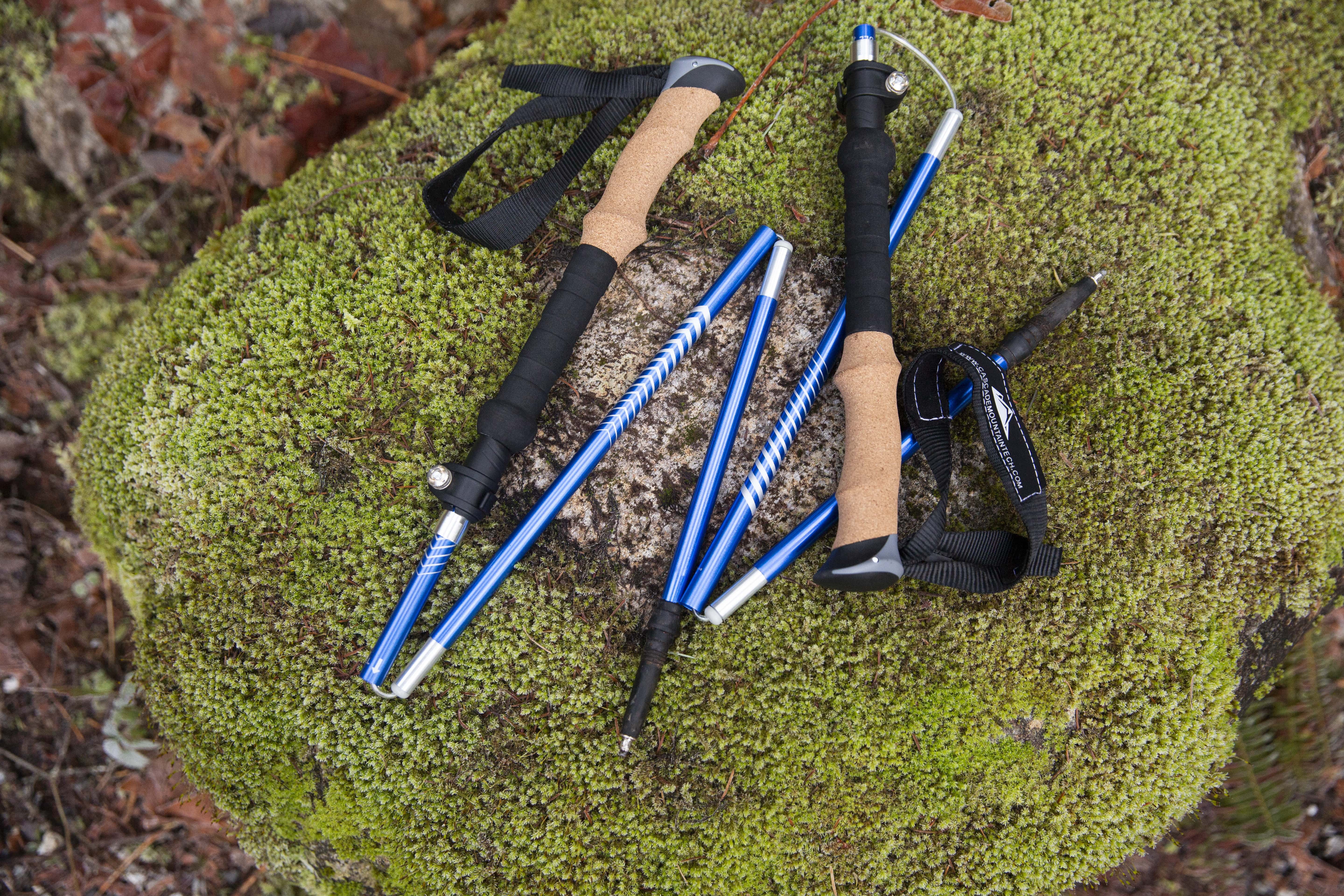 $42.99The Cascade Mountain Tech Royal Blue Aluminum Folding Poles are the best accessory to add to your hiking gear. Made from 7075 Aluminum, makes for a lightweight and durable trekking pole perfect for your next adventure. The quick locking mechanism allows for sturdy hiking and the folding design allows for you to store your trekking poles easily. The ergonomic cork grip allows for a secure grip that wicks away sweat and moisture, and will also conform to your hand the more you use it. The extended size of the poles can be easily adjusted between 44 and 54 inches and weigh 10.72 ounces each. This trekking pole kit includes round rubber boot tips, boot tips, mud baskets, and snow baskets.