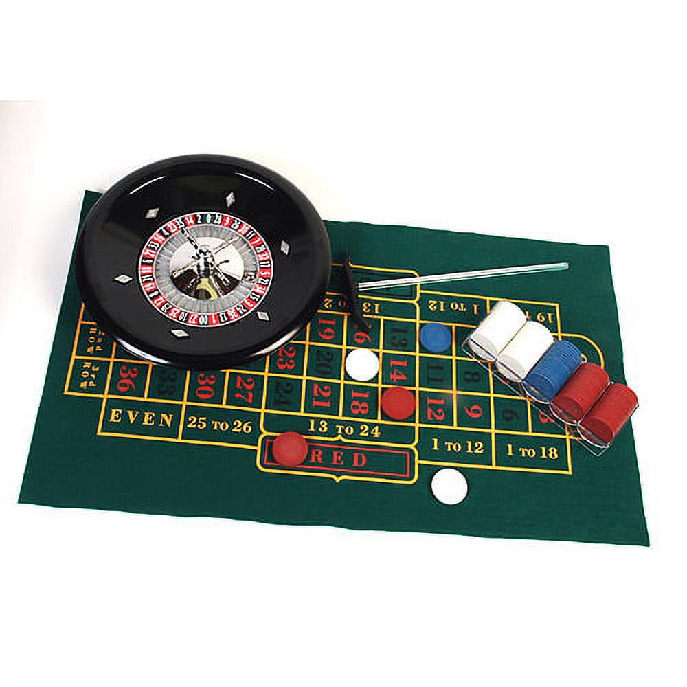 $50.30Get the excitement of a Las Vegas gaming floor with Casino Roulette. This authentic game set includes a sturdy 12″ diameter Bakelite roulette wheel, 100 chips (40 white, 40 red, 20 blue), 27″ x 16″ felt layout, plastic rake, two metal balls and complete instructions. Use this handsome set to learn the ropes, or host your own friendly tournament at home. Whether you’re betting on your lucky numbers or serving as the croupier, you’ll love this Casino Roulette game set.