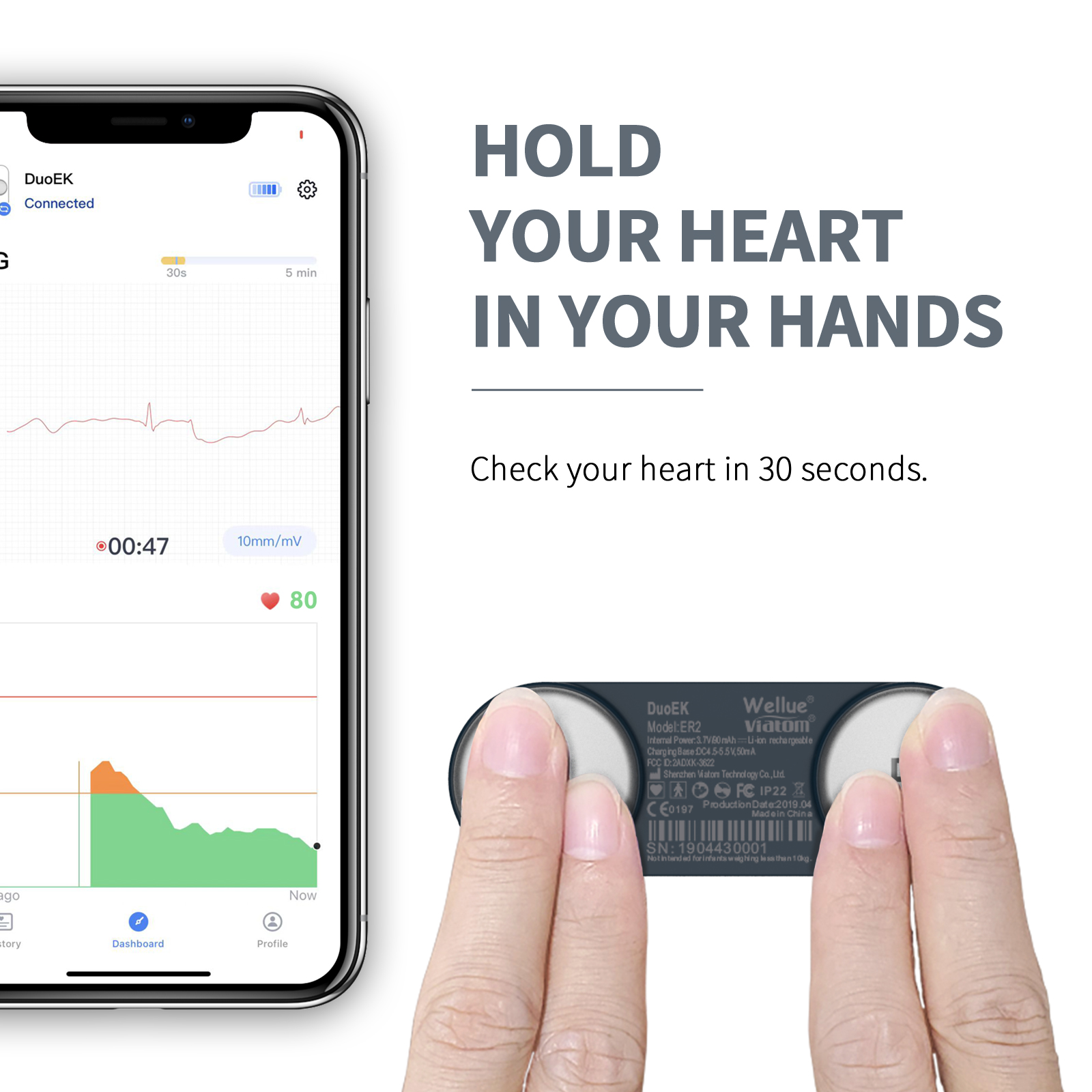 $39.55YOUR PERSONAL EKG MONITOR ER2-DuoEK is the personal bluetooth ECG monitor that works with your smartphone and fits easily into your pocket. Take unlimited heart rates anytime, anywhere without applying wires, or patches. It records a 30s-15min’s EKG & Heart Rate, and provides important information instantly. The intelligent app allows you to transfer, review and share the report on your smart phone conveniently. Before buying, there are three tips to be read in case of any mis-understanding: 1> Please do remember to charge the device for the first time, or the device will not work without activation. 2> This device can not work with a pacemaker. 3> For the users of Andriod System please pay attention: Permission required: It is Andriod System need your location to connect your device via Bluetooth(BLE). We will not keep track of your location in any way. We need access your file storage to save your data. We will not access your any other information. Please MAKE SURE of ALLOW the access as per instruction of the steps during the first time when you connect to Vihealth APP so that you can enjoy the APP functionalities and capture real-time heart health data on your smartphone.