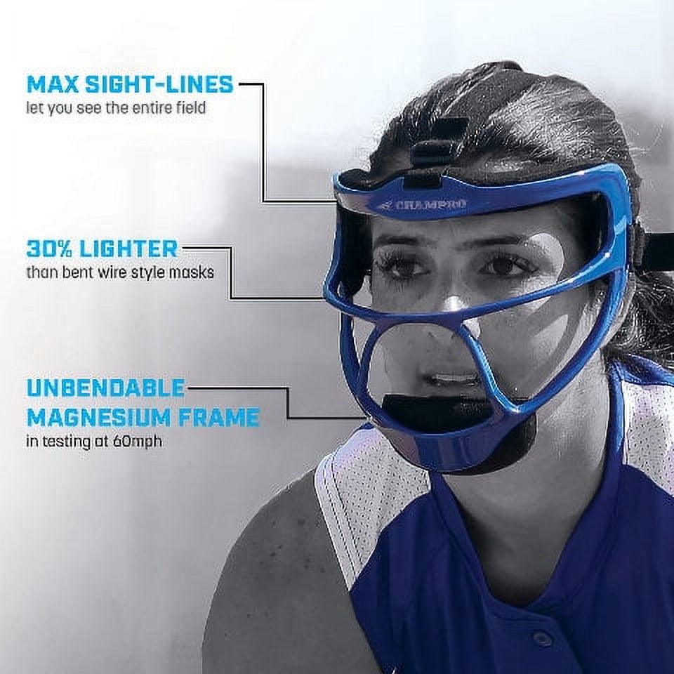 $35.11Champro Rampage Defensive Fielder’s Mask is the lightest fielder’s face mask on the market. Features: Max Sight-Lines let you see the entire field. 30% Lighter than bent wire style masks. 8 oz. Premium, Molded Magnesium Frame. Adjustable Harness with Ponytail Slot. Removable and Washable Moisture Wicking Pads. Head Sizing:YOUTH: Head Size = 6.25 – 6.75 / Head Circumference = 19.75″ – 21.25″. ADULT: Head Size = 6.75 – 7.5 / Head Circumference = 21.25″ – 23.5″.