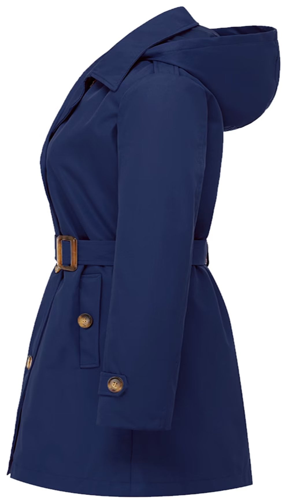 Chrisuno Plus Size Waterproof Trench Coat Coats for Women Ladies Mid Length Double-Breasted with Belt Hood Double Breasted Navy Blue 1X