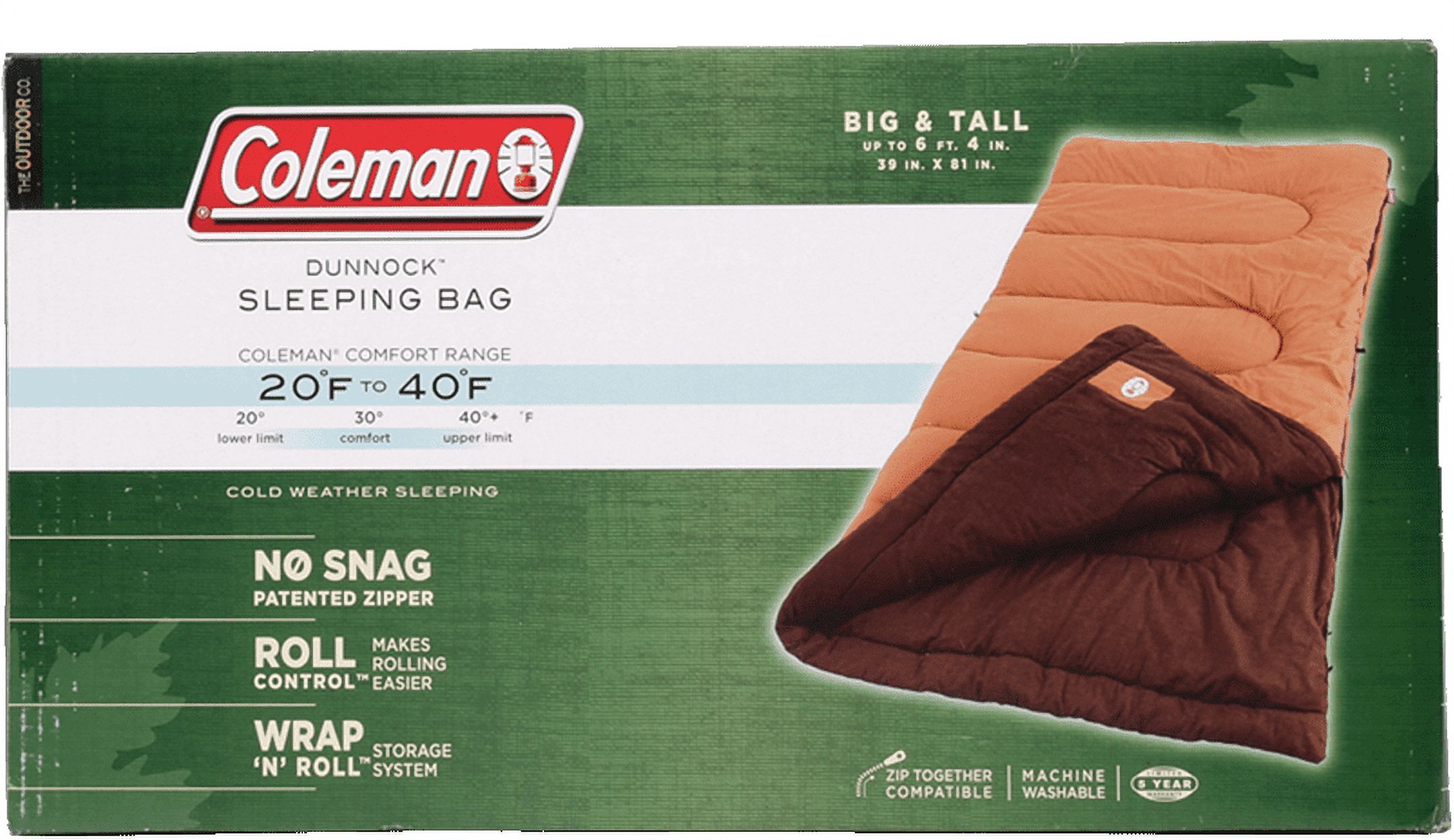 Coleman Dunnock 20-Degree Cold Weather Rectangular Big and Tall Sleeping Bag, Tan, 39″x81″