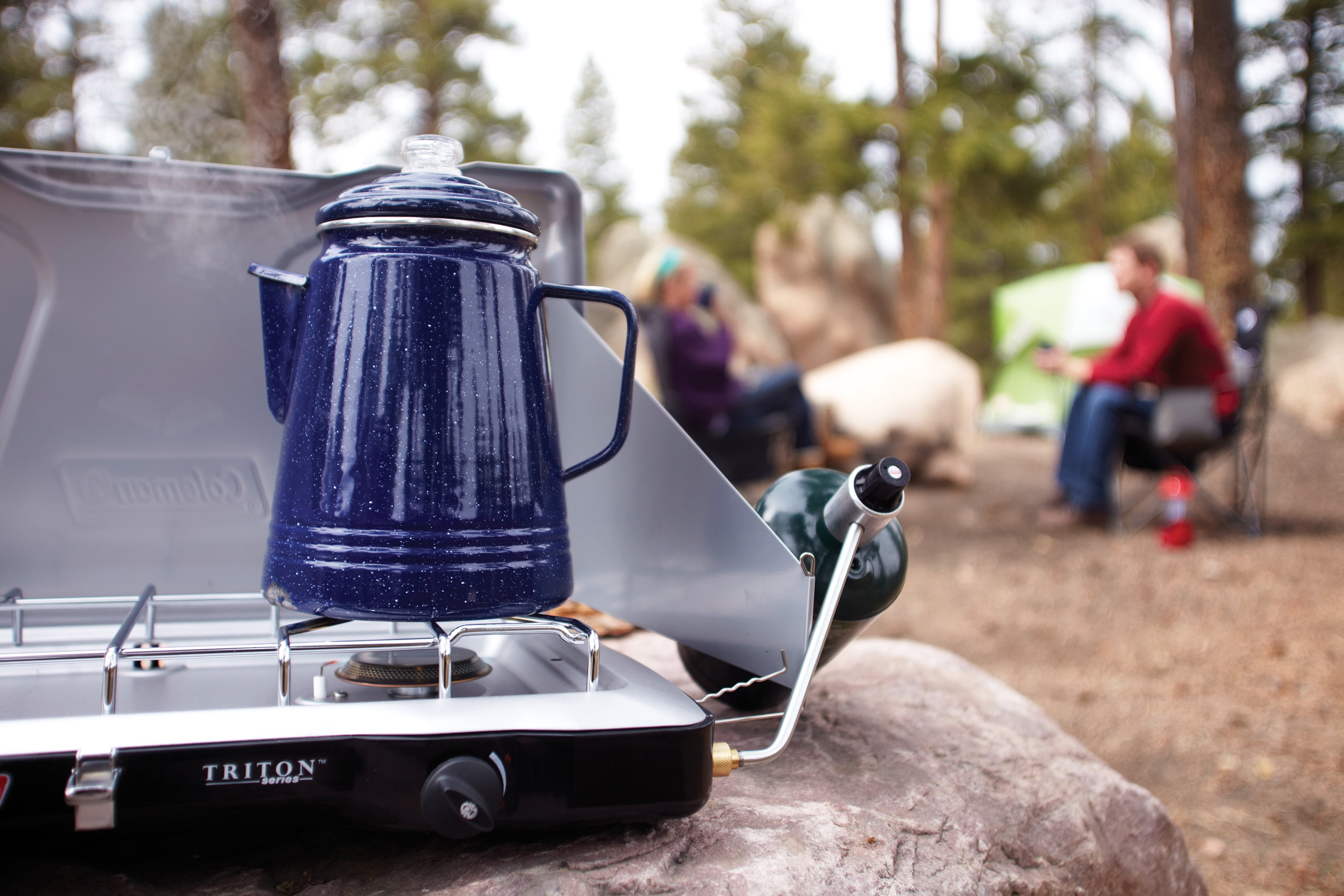 $77.12Brew up enough coffee for everyone to have a couple cups with the Coleman 14 Cup Percolator. The durable percolator includes all the hardware you need brew up the perfect cup of joe — the base, tube, basket and basket lid. The double-coated enamel pot resists cracks, the stainless steel rim helps to prevent chipping and the wide base gives the percolator more stability outside. When you’re all done, the pot wipes down easily for the next time you use it at home, at a picnic or at the campsite. Features: – 14 Cup capacity – Classic double coated enamel – Easy to clean – Tough, stainless steel rim helps prevent chipping – Dishwasher safe – Blue enamel