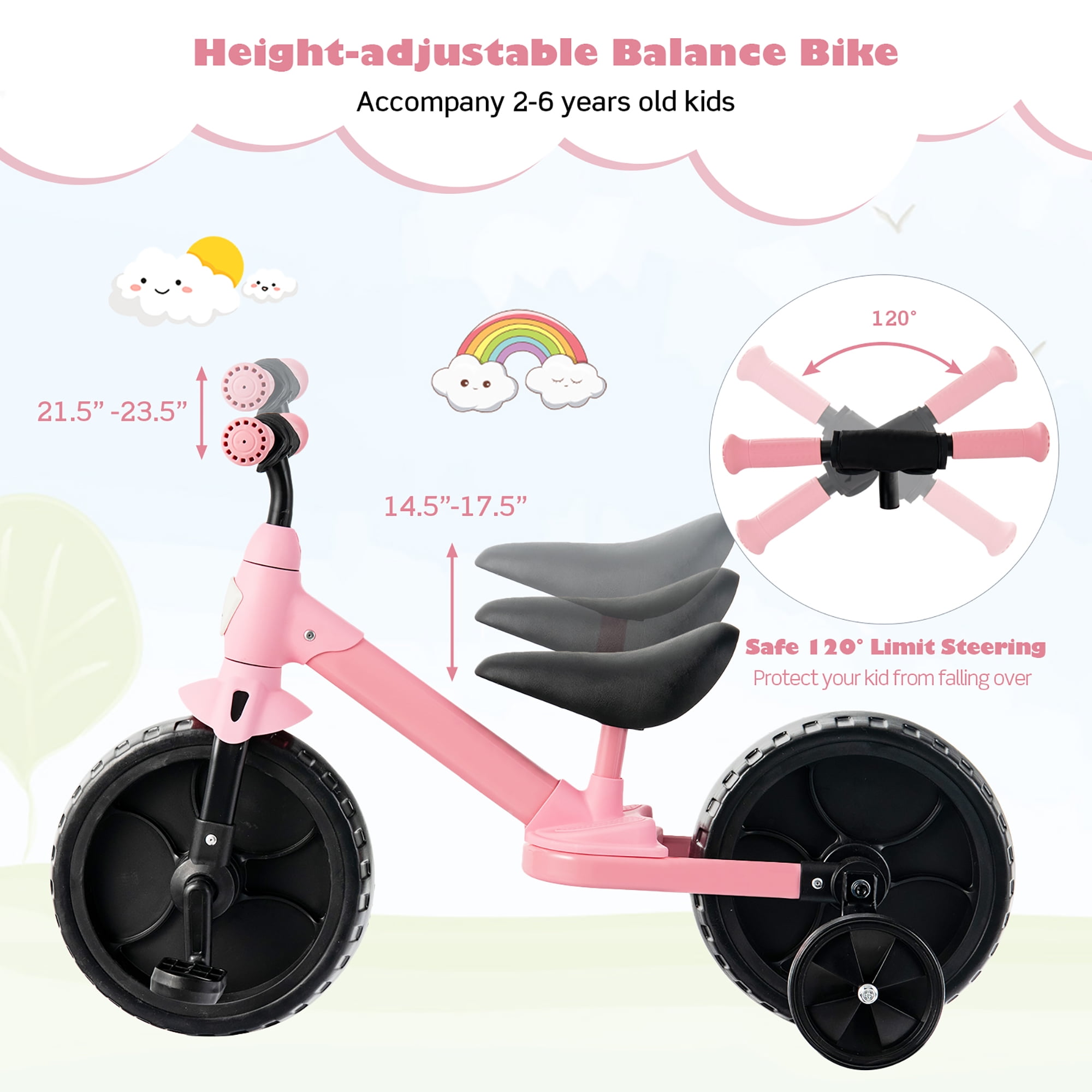 Costway 4-in-1 Kids Training Bike Toddler Tricycle w/ Training Wheels & Pedals Pink