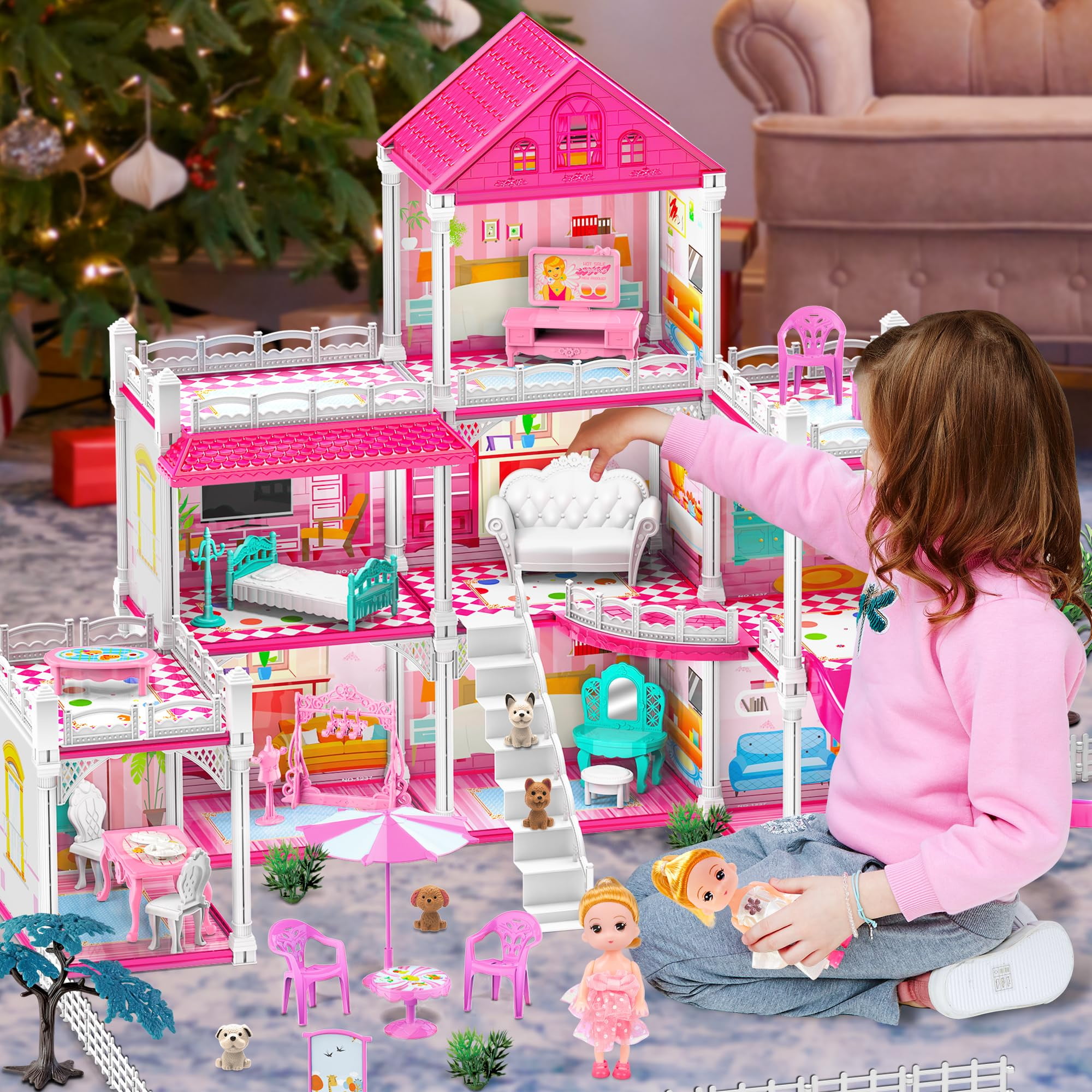 Cuopluber Doll House,Princess Castle House for Girls,3-Story 8 Rooms Playhouse with 2 Dolls Toy Figure and Furniture & Accessories, Toy Gifts for Kids 3 4 5 6 7 8 9+ Year Old