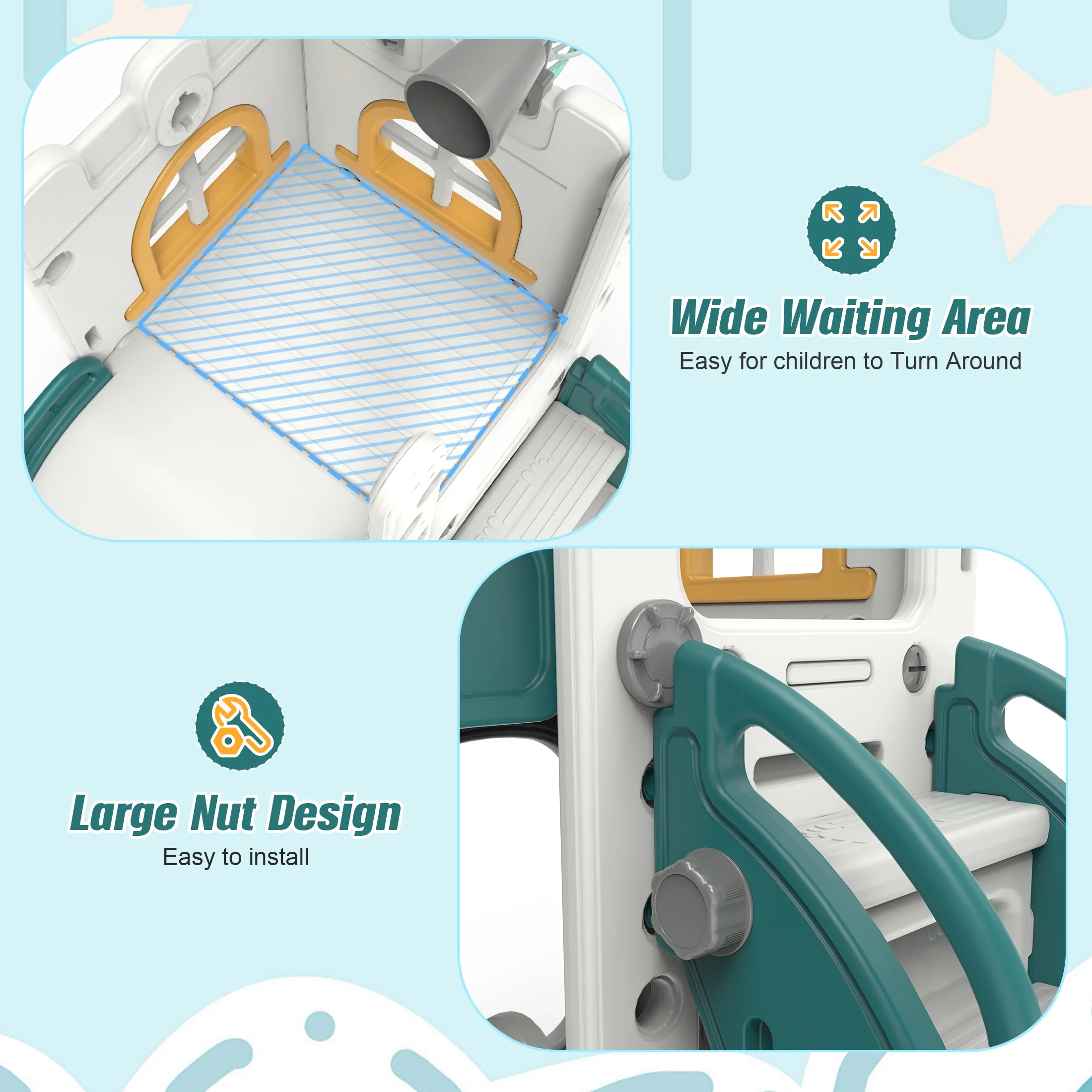 $147.91Original price was: $147.91.$73.78Current price is: $73.78.6-in-1 Toddler Slide, Children’s Climbing Slide with Basketball Hoop and Ball, Indoor and Outdoor Backyard Playground Climbing Theme Baby Slide Toy, Suitable for Toddlers Aged 1-3 Climbing and Sliding, Enclosed Shooting Multiple ways to play: Shooting, Hide and Seek, Telescope, Climbing, Slide Always attract the baby’s attention to avoid three-minute heat The slide is an adventure for the baby. While feeling the excitement and speed, the baby also receives basic sports training. The three-section slide has a heightened and lengthened guardrail, and the slide is scientifically divided to enhance the buffering force during sliding, effectively preventing the baby from hurting the little butt. Fully enclosed foot pedal to avoid the risk of missing the pedal Wide and expand the sliding area to create a spacious activity space for the baby Color: yellow-green, blue-gray Material: HDPE Package includes: 1 x children’s slide, 1 x children’s swing, 1 x basketball hoop, 1 x telescope, 1 x storage room 1 x instruction manual
