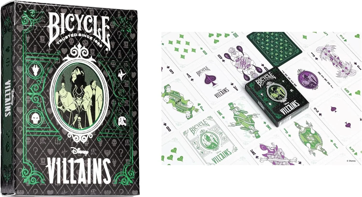 $50.15BICYCLE PLAYING CARDS ULTIMATE DISNEY COLLECTORS BUNDLES: Includes 6 Brand New Deck of Playing Cards. You will receive 1 deck of each Black and Gold Mickey Mouse Deck, Classic Mickey Mouse Deck, Disney Princess Pink Deck, Disney Princess Navy Deck, Disney Villains Green Deck, Disney Villains Purple Deck. Cards by the United States Playing Card Company.