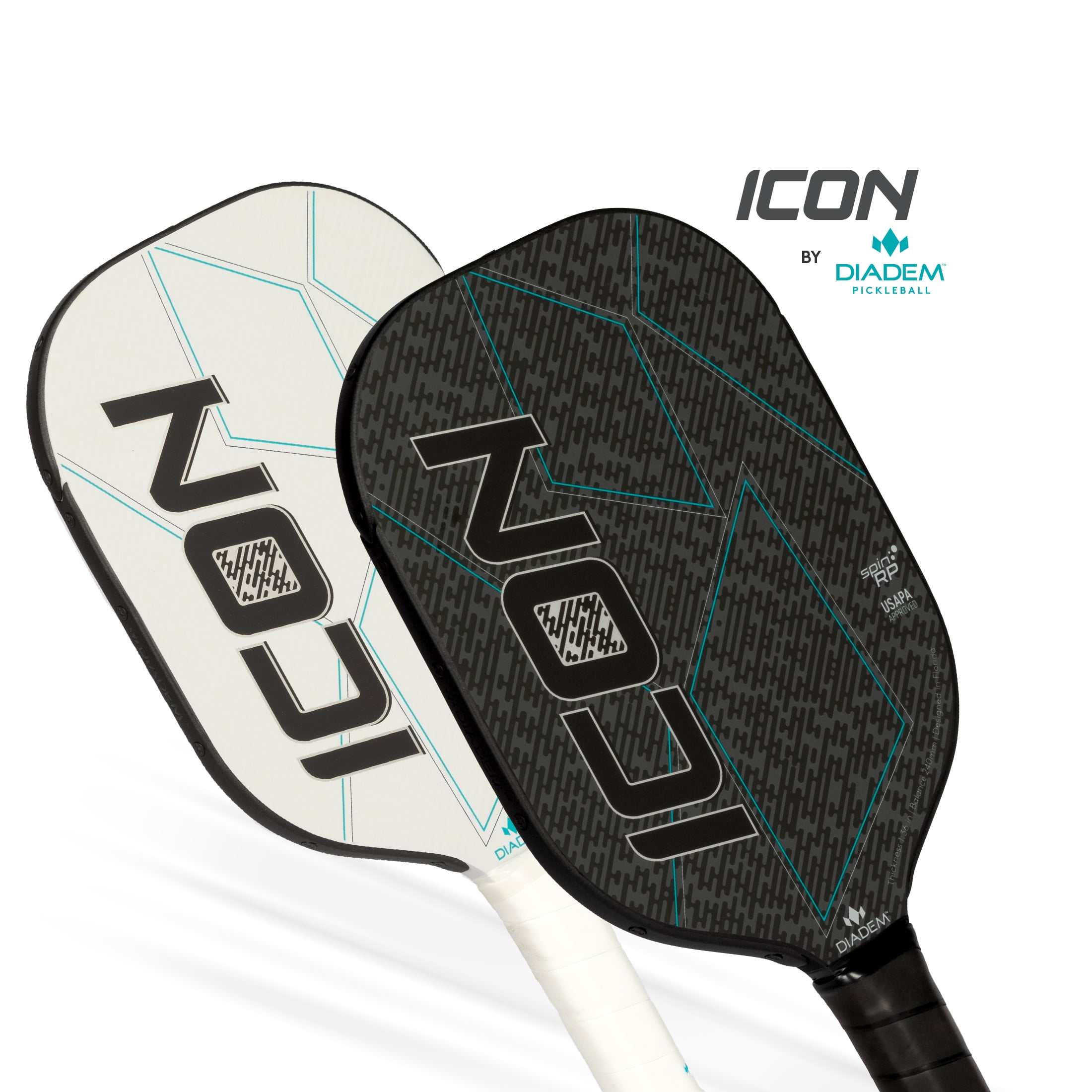 $85.96The Diadem pickleball ICON Middleweight Paddle in Black colorway was designed to take your pickleball to the next level. The paddle face is the perfect blend of stiffness and comfort for a soft but powerful feel. In the core our 8mm PP honeycomb allows you to play comfortably from the baseline with easy power. Spin RP, our proprietary two component polyurethane coating allows the Icon to be the most spin friendly USAPA approved paddle on the market. Perfectly balanced and beautifully designed with a sleek edge guard and high-end graphics. The Icon is the next generation of pickleball paddles.