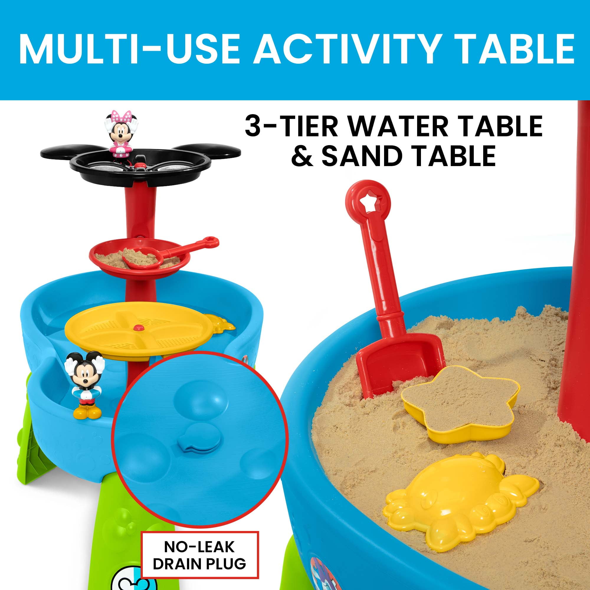 Disney Mickey Mouse Water Table by Delta Children – 3-Tier Water Table with 11-Piece Toy Set, Blue