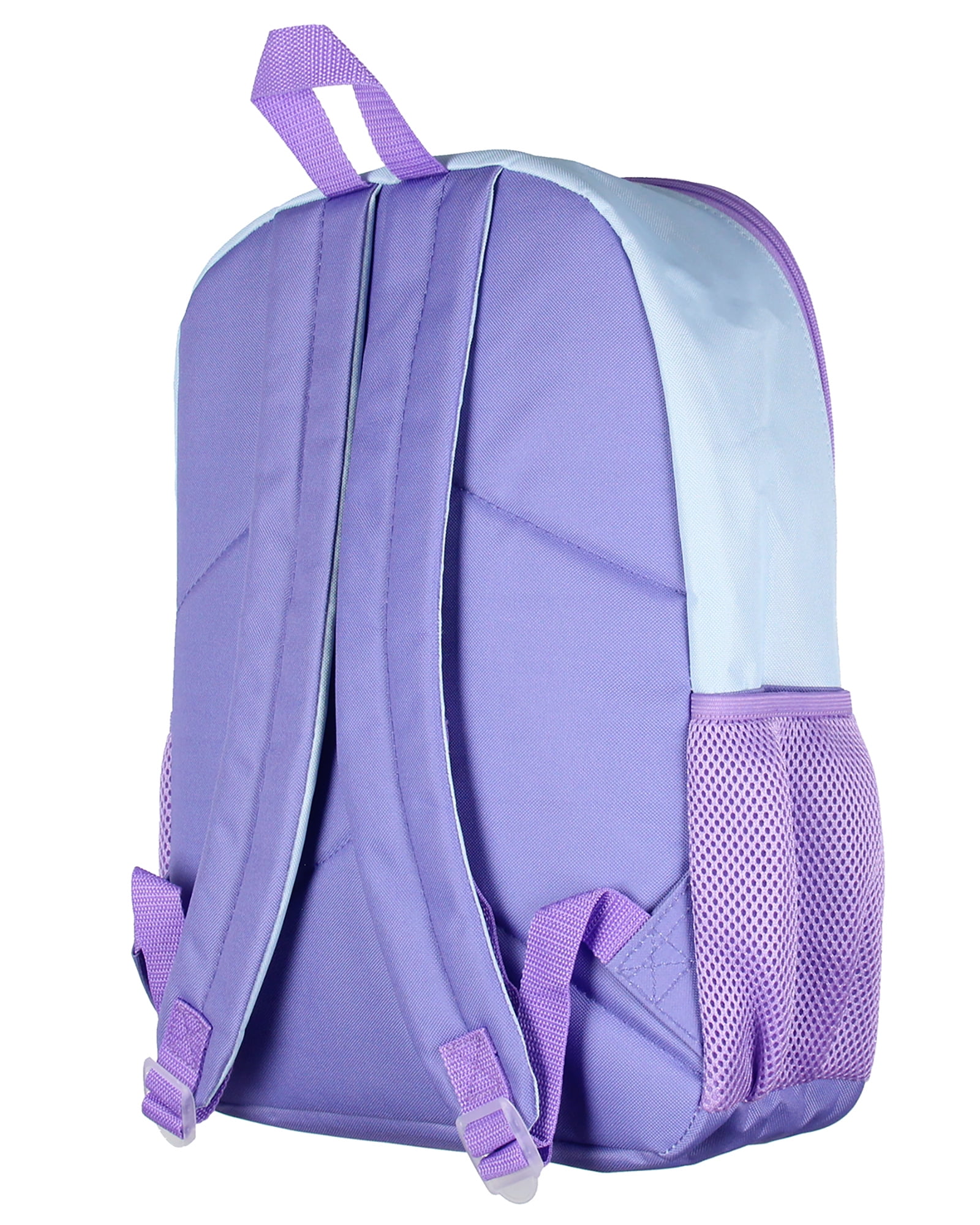 $43.82These frozen backpacks are great for any young fan of the beautiful Disney animation. The back has a large snow queen, Elsa design, and a wintery background. The design and the silver snowflake both have reflective qualities for your child’s safety. The smaller zipper pocket is perfect for school utensils like pencils, rulers, calculators, and even phones. The main zipper compartment has tons of room to fit books, snacks, travel gear, dance clothes, tablets, or anything else you could think of. The side mesh pockets will fit most drink bottles and cans. Measures approx. 16″ x 12″ x 4″. This Frozen bag is not recommended for children under 3 years of age. Minimum Age +3 years.
