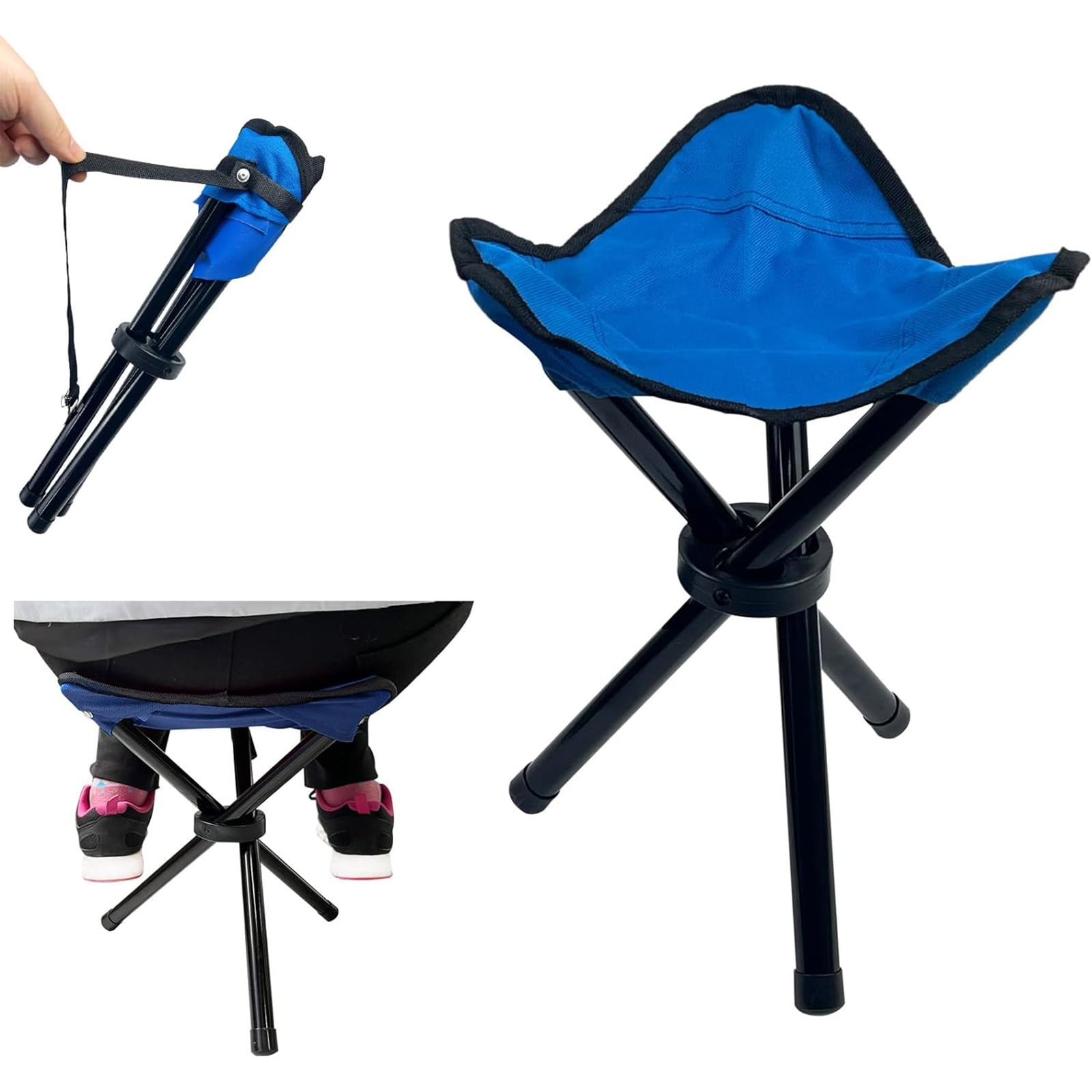 DIY.STORE 2 Pack Folding Camping Stool Portable14.96 inchs High Fishing Chair Seat for Camping Fishing Hiking Gardening and Beach,Blue