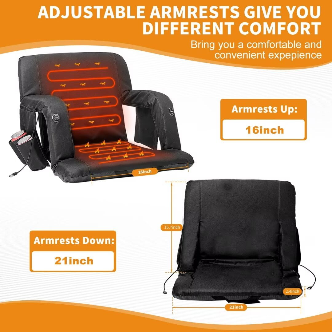Docred Heated Stadium Seat for Bleachers with Back Support, Bleacher Chair with 6 Reclining Positions & Arm Support, Heated Chair Stadium Chairs Heated Camping Chair- Power Bank Not Included