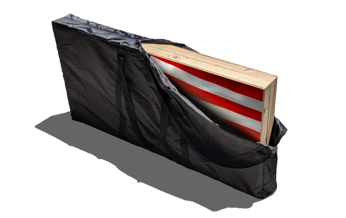 $214.99PartyPongTables.com Wood PartyToss 4 ft. x 2 ft. professional cornhole boards game set and all weather bags are perfect for everyone looking for official, high quality cornhole boards and bags game sets. Proudly made with high grade materials and professional assembly. High quality 1/2″ inch plywood is treated, filled, and sanded smooth with a glossy, laminated finish. 3/4″ pine is used to frame the plywood board surface, providing ultimate durability, while also keeping the overall board weight down to under 9 lbs each. The 6″ hole, its location and board height meet ACA official size dimensions while each board measures 47″ x 23 1/4″. PartyPong refuses to waste materials and this is the size yielded from a 4′ x 8′ sheet of plywood without ANY wasted material. The nylon carry/storage bag with shoulder straps make carrying a breeze and protects your investment when not in use. Color-Changing LED Glow Light Strips with 16 different colors to choose from are pre-installed and add an awesome lighting effect to your cornhole boards. Additionally, each board has super bright LED hole lights with 3 optional color (red, blue and white). Easily visible in daylight and extra vibrant in the dark, these battery-powered LED glow lights put the ‘Party’ in PartyToss.