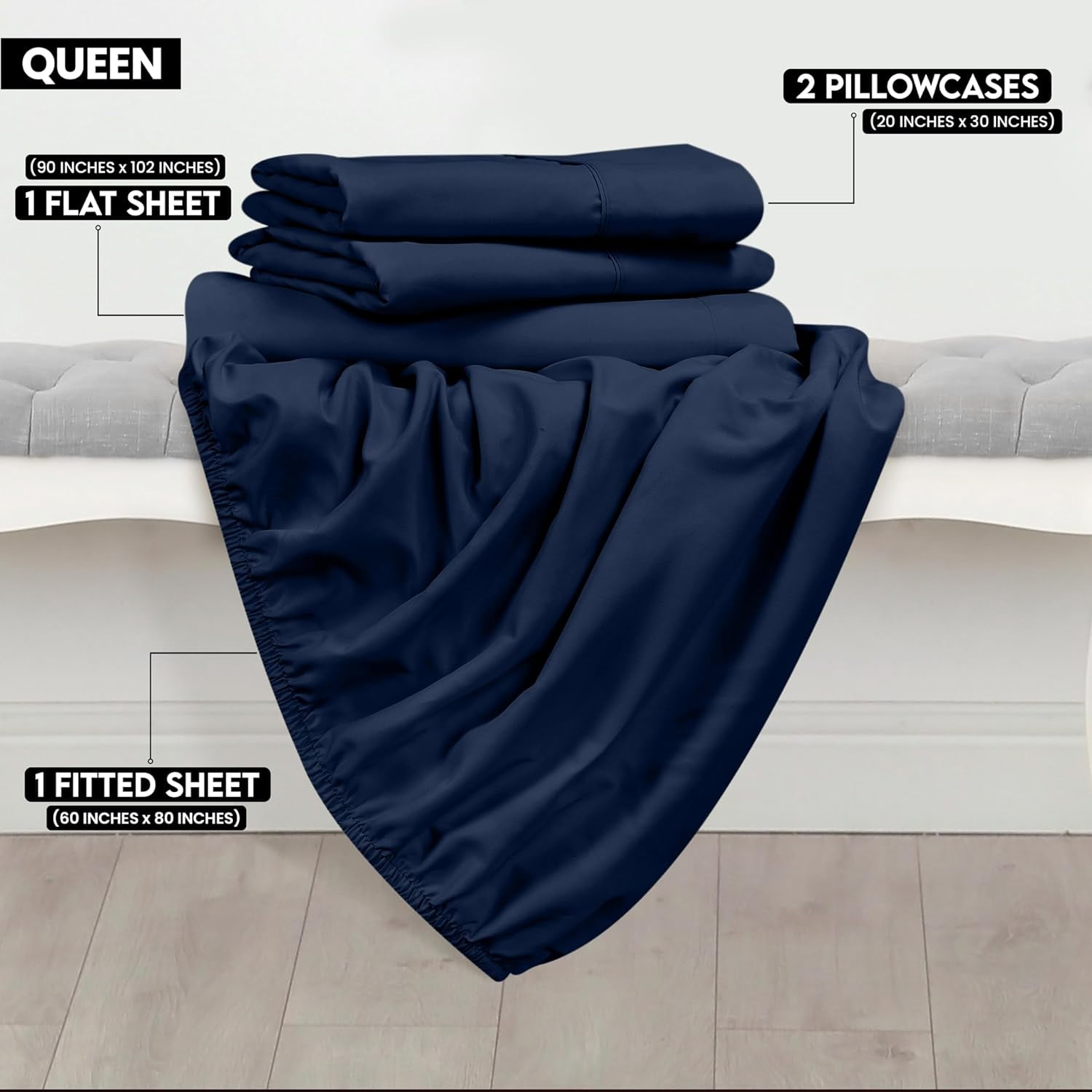 4 Piece Bedding Queen Sheet Set – Brushed Microfiber – Soft Bed Sheets for Queen Size Bed Set