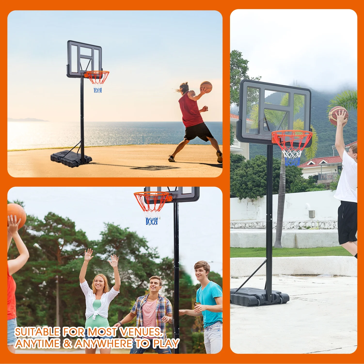 $171.99G GX9 Portable Basketball Hoop with Quick Lift System and Wheels Portable Basketball Hoop: Equipped with two wheels for easy mobility,let you enjoy your basketball game anytime,anywhere. Install it indoors or outdoors—whether in the backyard, front yard, park, playground, garage, gym, etc. Suitable for various age groups, fostering relationships among family and friends. 4.8-10ft Height Adjustment Range: Height easily adjustable from 4.8-10 feet height.8Feet -10Feet(3 Poles installed);4.8Feet-6.8Feet (Remove Middle Lower Pole 2 poles installed ).It meet the high demand of different age groups. Stable Base and Structure: The basketball hoop system features a strong and extra-large base.Fill the base with sand (154lbs)or fill the base with water (52Liters)to let the base more stable,guaranteeing safety during play. Strong 44 Inch PC Backboard: The basketball hoop features a 44″ large PC backboard with excellent visibility and impact resistance, enough for bad weather and intense games for long-term use. Easy Setup & Excellent Service: Installation accessories and instructions are included in the package. Feel free to contact our customer support team if there is any damage or missing parts during transport. Our professional after-sales team will respond within 24 hours and help you resolve the issue!