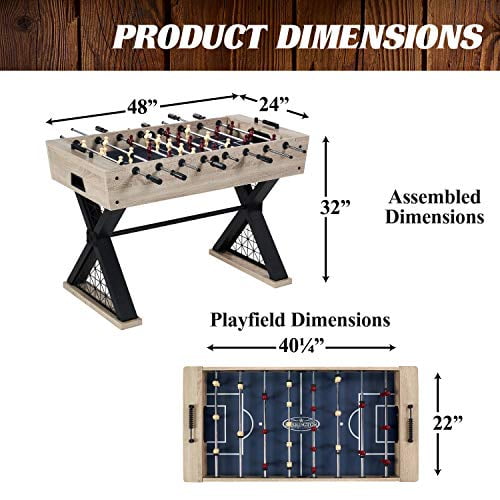 $189.19The Barrington Brooks 48″ Foosball Soccer Table is the perfect addition to any basement, game room, office, or man cave. This indoor table has robot-style players that require no tools for assembly for quick and easy setup. The sturdy X-leg design has industrial-style mesh and a metal connection bar that provides extra support and stability; hidden leg levelers ensure an even play surface. Keep score easily with the slide bead scorer during the fast-action games. This game table includes all accessories needed to take your best shots with the fast-action Barrington Brooks 48″ Foosball Soccer Table.