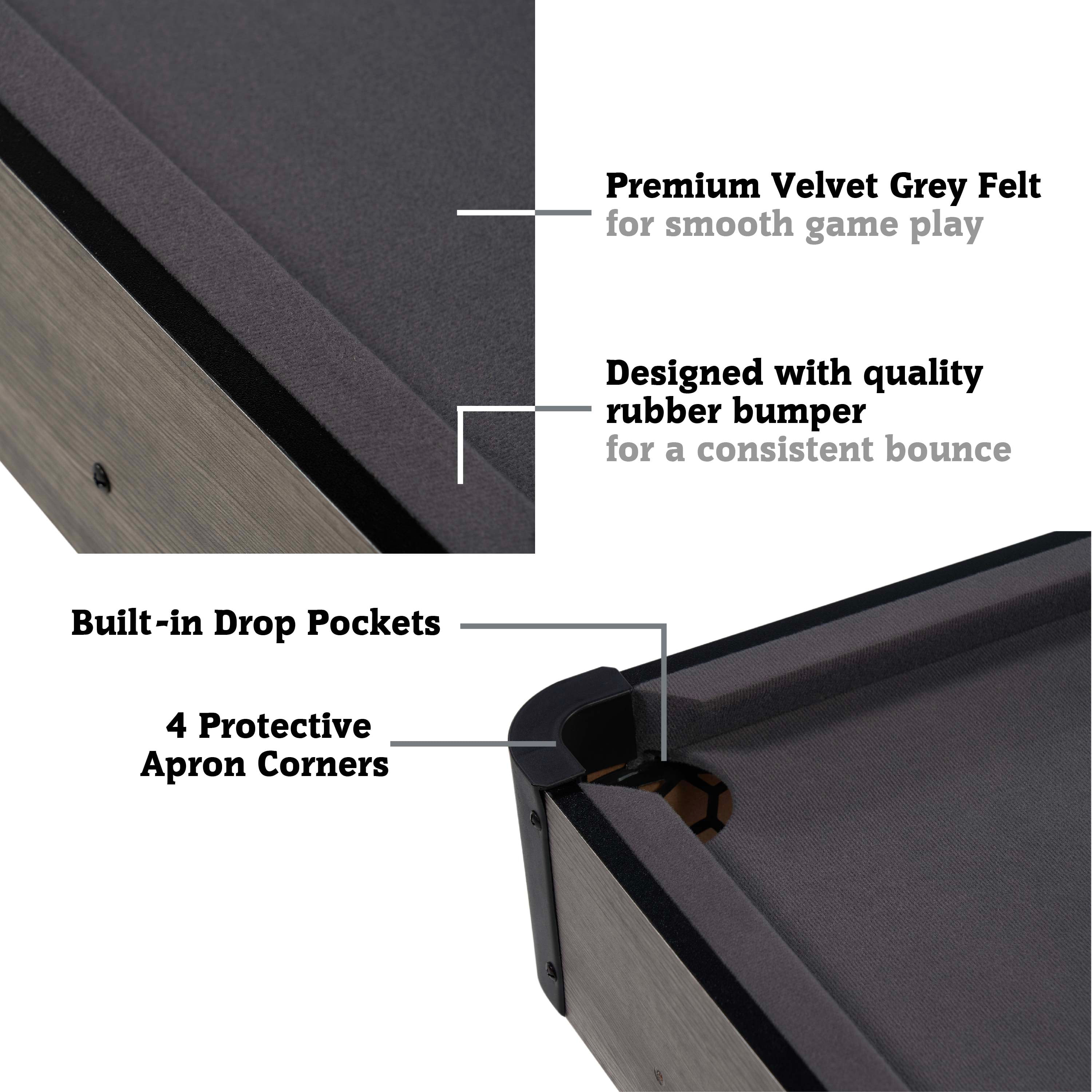 $154.79Original price was: $154.79.$124.69Current price is: $124.69.The Hall of Games Charleston 48-inch Billiard Table is compact in size and scaled down to fit any game room. It’s easy to store or take anywhere with you. Made of top-quality materials and an oak wood finish that fits in with any room’s décor. The Charleston Billiard Table features sturdy box legs and crossbar leg panels. Leg levelers ensure an even playfield. The play surface features a smooth ball rolling felt with rubber bumpers, producing a consistent ball bounce. The built-in drop pockets are a great finishing touch. The table comes complete with all the accessories needed to play, so there is nothing extra no buy. Assembly is easy with our step-by-step instruction manual, complete with picture illustrations. Have hours of fun playing with your friends and family. Assembled product dimensions 48 in x 24 in x 30 in. Playfield dimensions 45.375 in x 21.375 in