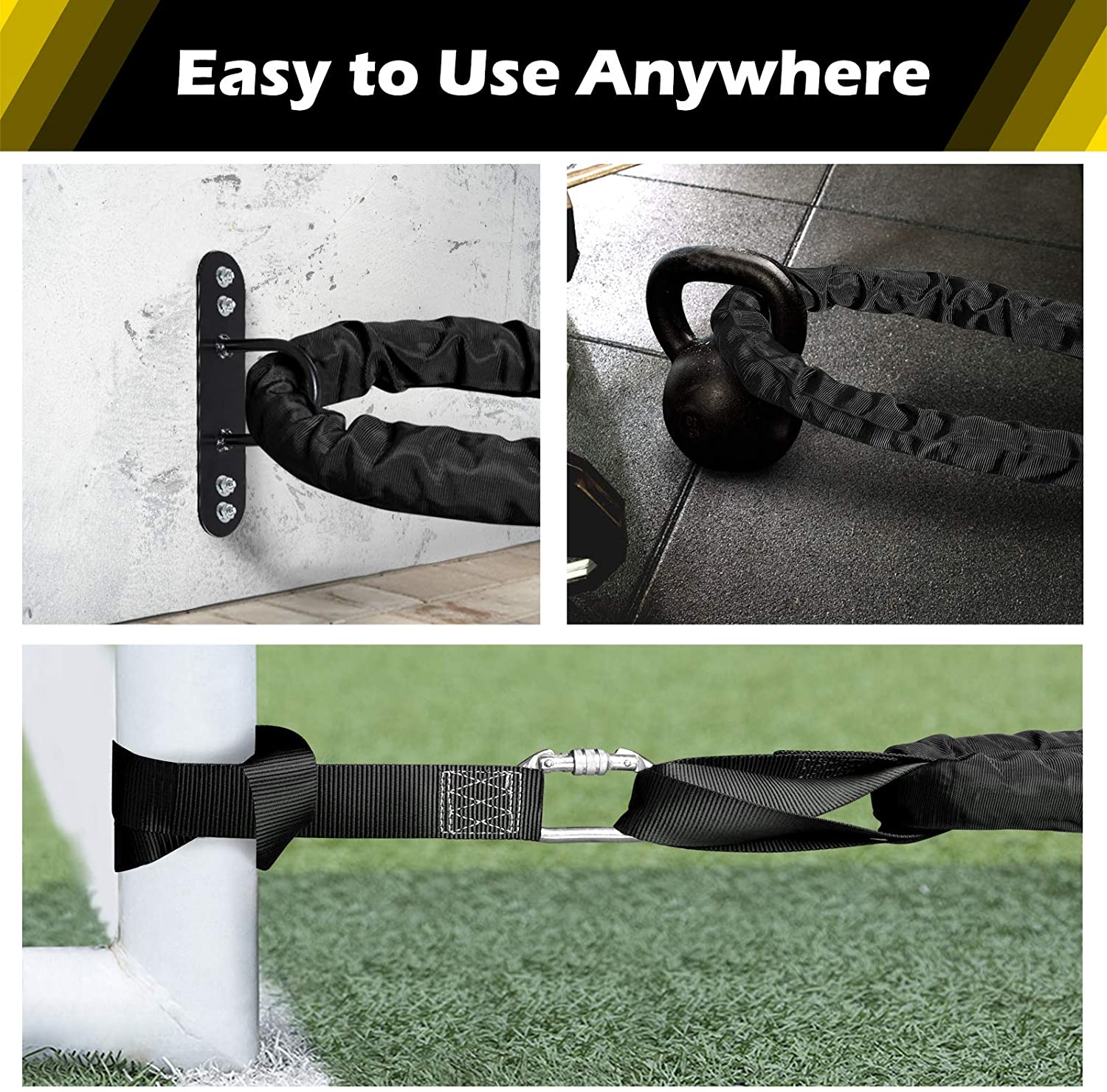 $70.51LET THE BATTLES BEGIN! Jumping and skipping are classic calorie-burners, but they’re not the only actions you can do with a rope. The secret weapon to torching fat, boosting metabolism, and sculpting muscles? Amp up the heft-factor with a 4ActiveU battle rope. Often eyed-up nervously from the other side of the gym, this thick, heavy length of rope can be brought into your training routine with confidence. Use them correctly and the benefits of battle ropes are anything but basic. Blast The Fat Sculpt Your Muscles Increase Mobility Protective Nylon Cover 100% poly Dacron, wear-resistant and durable, our sleeve protects the rope from friction and fray, making it more durable and ensuring many years of usage. Extra Coated Handle Heat shrink grips protect your hands and give you a secure hold for all of your training and exercises! Easy To Set Up Use our heavy anchor straps and carabiner to secure your battle ropes anywhere in seconds. Our extreme strength reinforced nylon straps can hold up to 2000lbs.