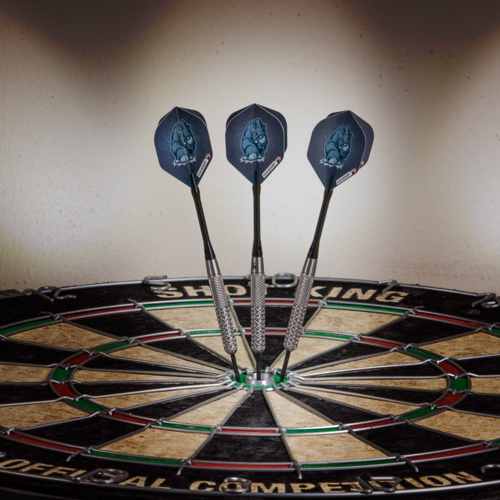 $42.29Charge ahead and trample over the competition when you bring the Elkadart Rhino Steel Tip Darts designed for use with sisal dart boards. These darts are packed with features starting with the barrel, fashioned from 80% Tungsten and 20% Nickel. Tungsten is a very dense metal, able to create slimmer darts with the same weight as lighter metals; this allows for tighter shot groupings without sacrificing control, increasing your scores. Tungsten is a sign of quality and durability as well because of its density. A higher tungsten content will produce a slimmer dart profile than one with less and 80% is among the highest you’ll find in dart set. More tungsten in the dart increases the price as tungsten is a rare metal and its density takes more effort to machine. The increased price gives a higher quality barrel and can improve performance, increasing scores. These darts are heavy duty, with extra weight across all barrel styles. Each barrel enjoys knurled bands and deep grooves, allowing your grip to remain consistent throw after throw. The Rhino Darts feature tough, Aluminum Shafts that properly distribute the massive weight of these darts for optimal flight trajectory. Finally, each dart is finished off with intimidating Rhino graphics adorning each wide glide flight, for a menacing look. Each set includes three wide glide flights, and a slim dart case. Made in England.