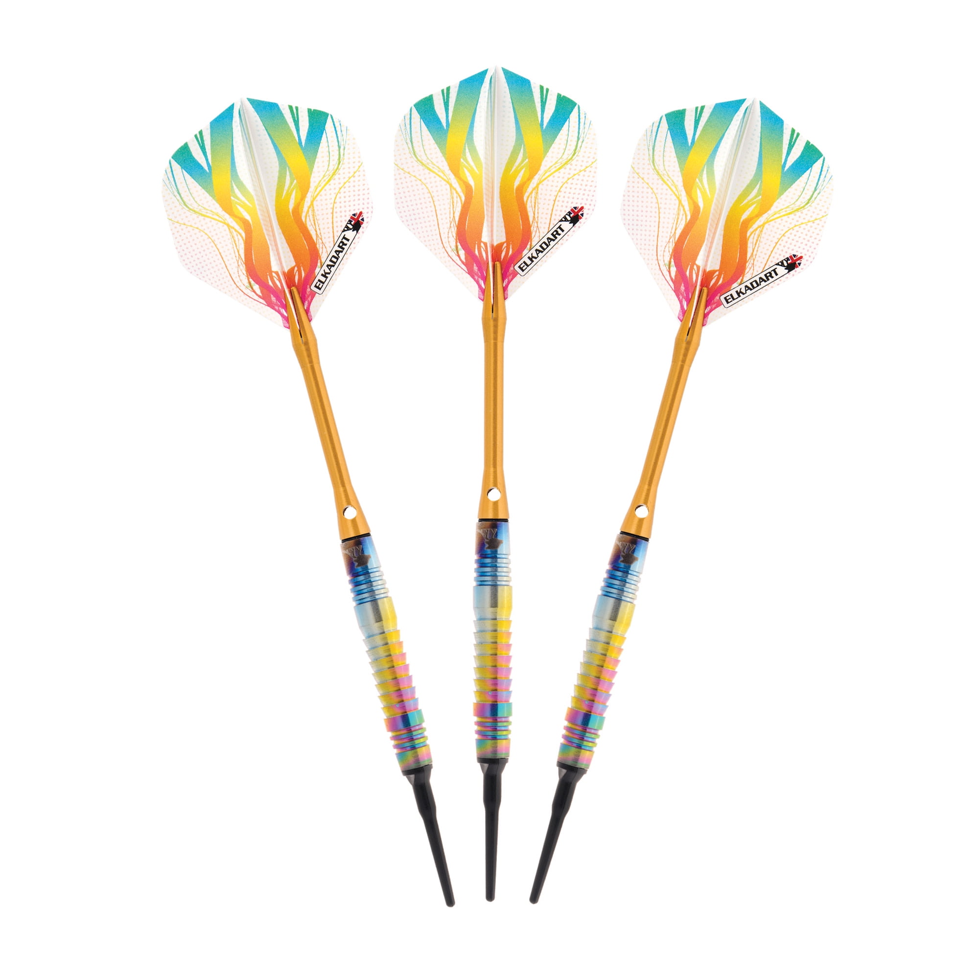 Elkadart Rainbow 90% Tungsten Soft Tip Dart Set, Ringed Barrel, 18 Grams