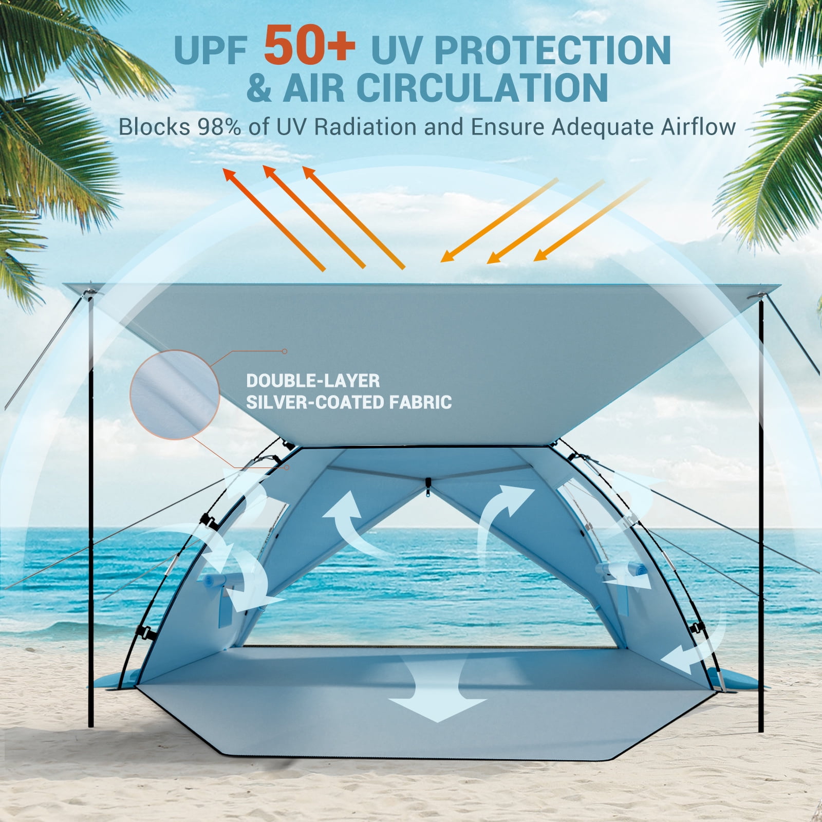Elegear Beach Tent, Spacious 4-5 Person Sun Shelter with Canopy, 360° Air Circulation UPF 50+ UV Protection Waterproof Portable Lightweight Tent for All Occasions, Skyblue