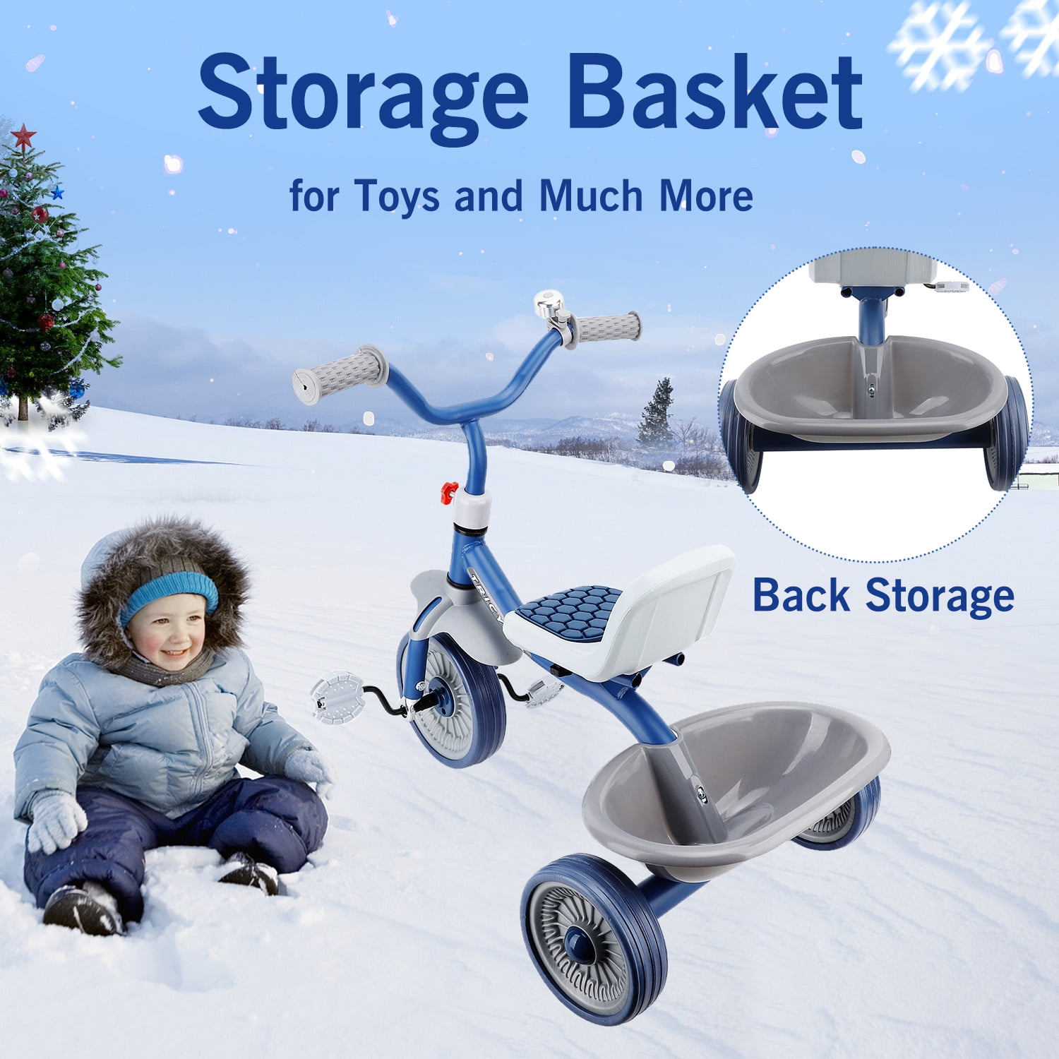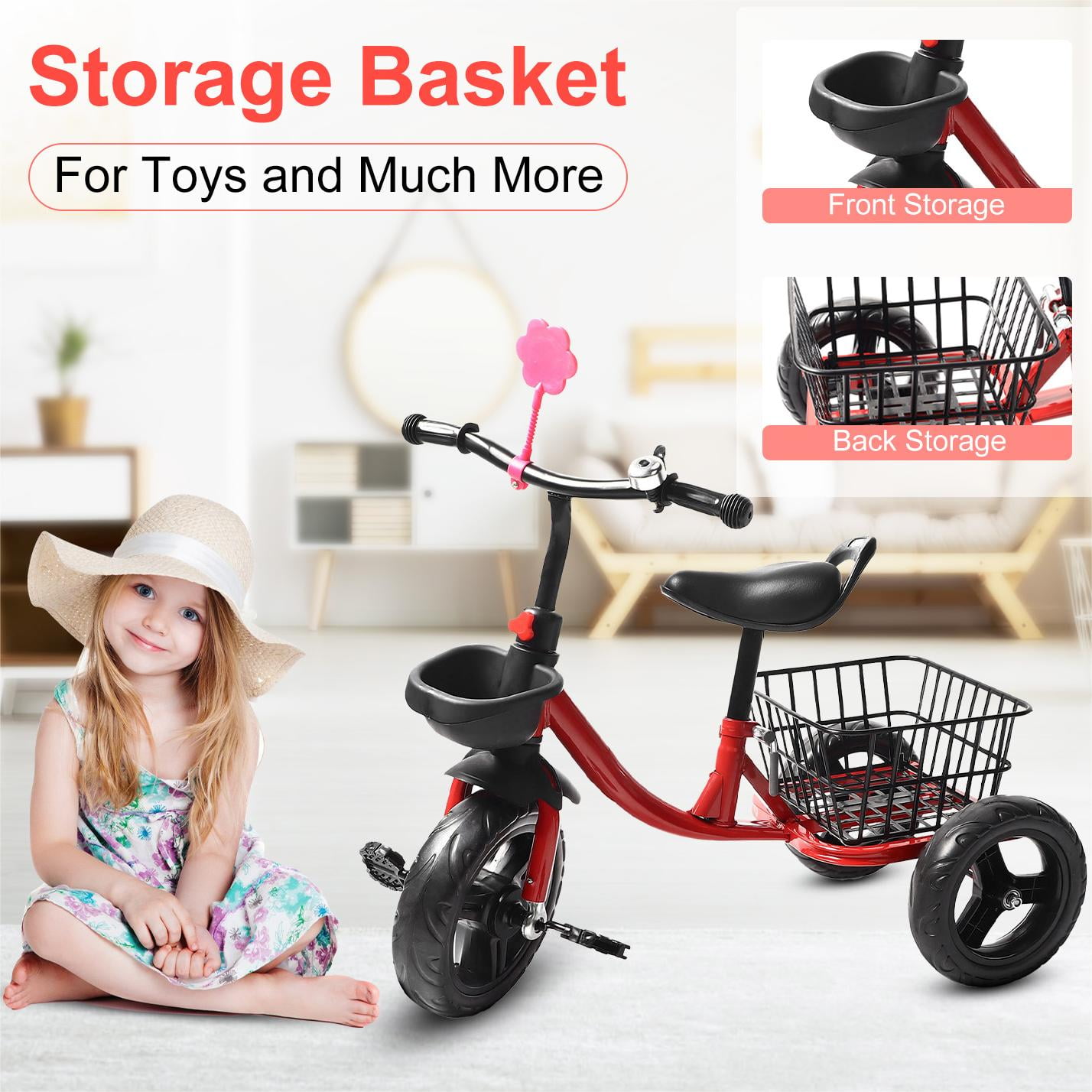 EOTVIA Kids Tricycle for 1-4 YO, Toddler Bike Kids Trike for Balance Training, Toddler Tricycle with Pedals/Storage Basket, Baby Bike for Girls Boys