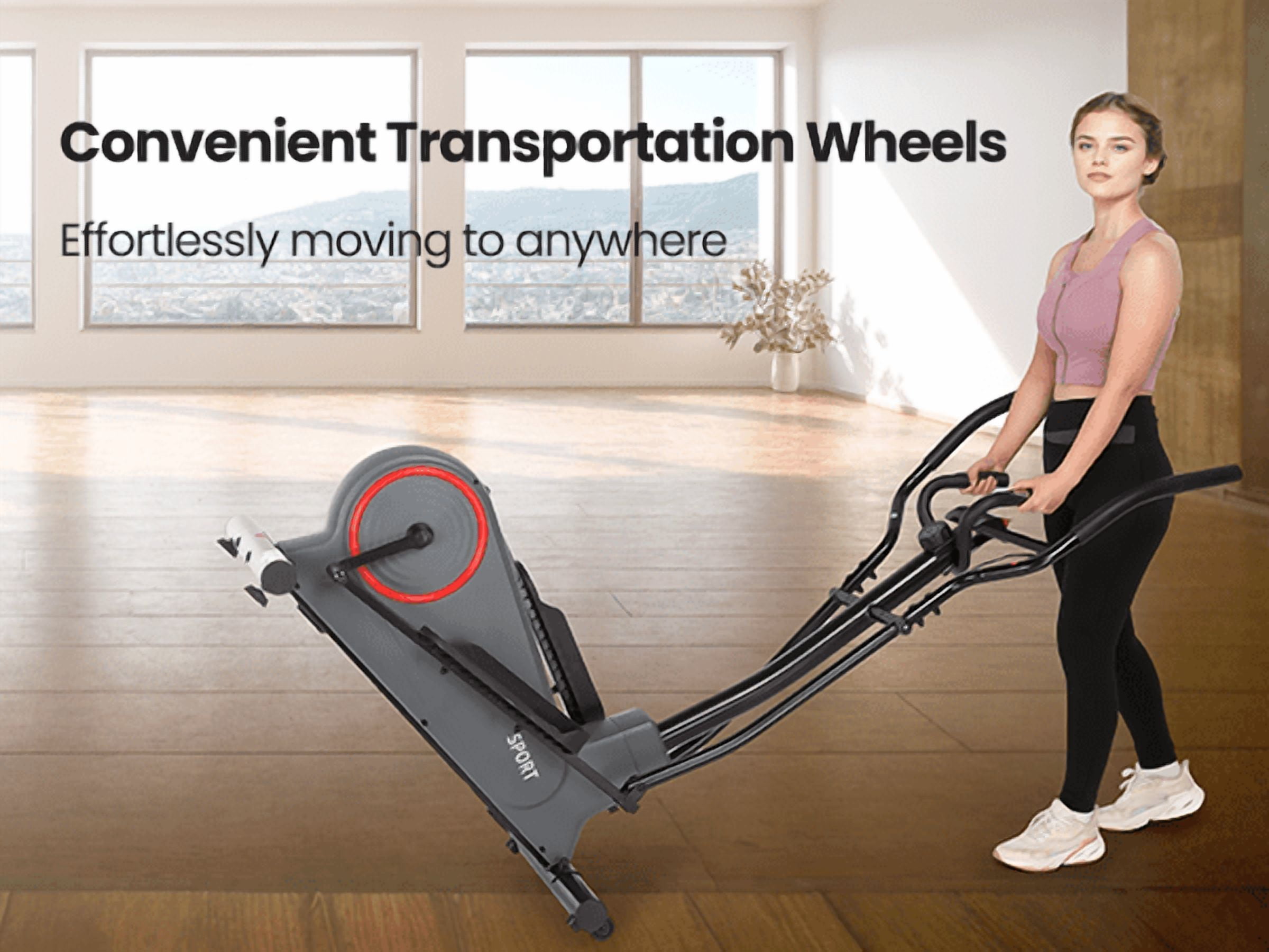 $301.85Original price was: $301.85.$159.95Current price is: $159.95.Elliptical machine for home use with front flywheel magnetic resistance can help you exercise for your whole body and protect your joints, giving you a more quiet, smooth and sufficient workout experience. The elliptical machine with the water bottle holder allows you to rehydrate as you cycle. The LCD monitor tracks your exercise data, including time, speed, distance, calories burned and heart rate. Timely data feedback is beneficial to keep your motivation. The design of dual handles makes the exercise more diversified. The movable grip can drive the whole body exercise, the fixed grip can track the heart rate, as well as also carry on the anaerobic sprint training. When you want to watch videos or some programs, the elliptical machine with iPad holder can let you enjoy exercising and entertainment at the same time. The pulse grips sensor monitor the user’s heart rate. It is an effective tool to know whether your exercise is correct and sufficient. The sensor data will help you better understand your health and fitness status. Specification: Max User Weight: 264 lbs. Applicable Height: 4′ 11 – 6′ 3 in. Packing Dimension: 38 In. L x 25.8 in. H x 15 in. W Package Content: 1 x Elliptical machine with accessories