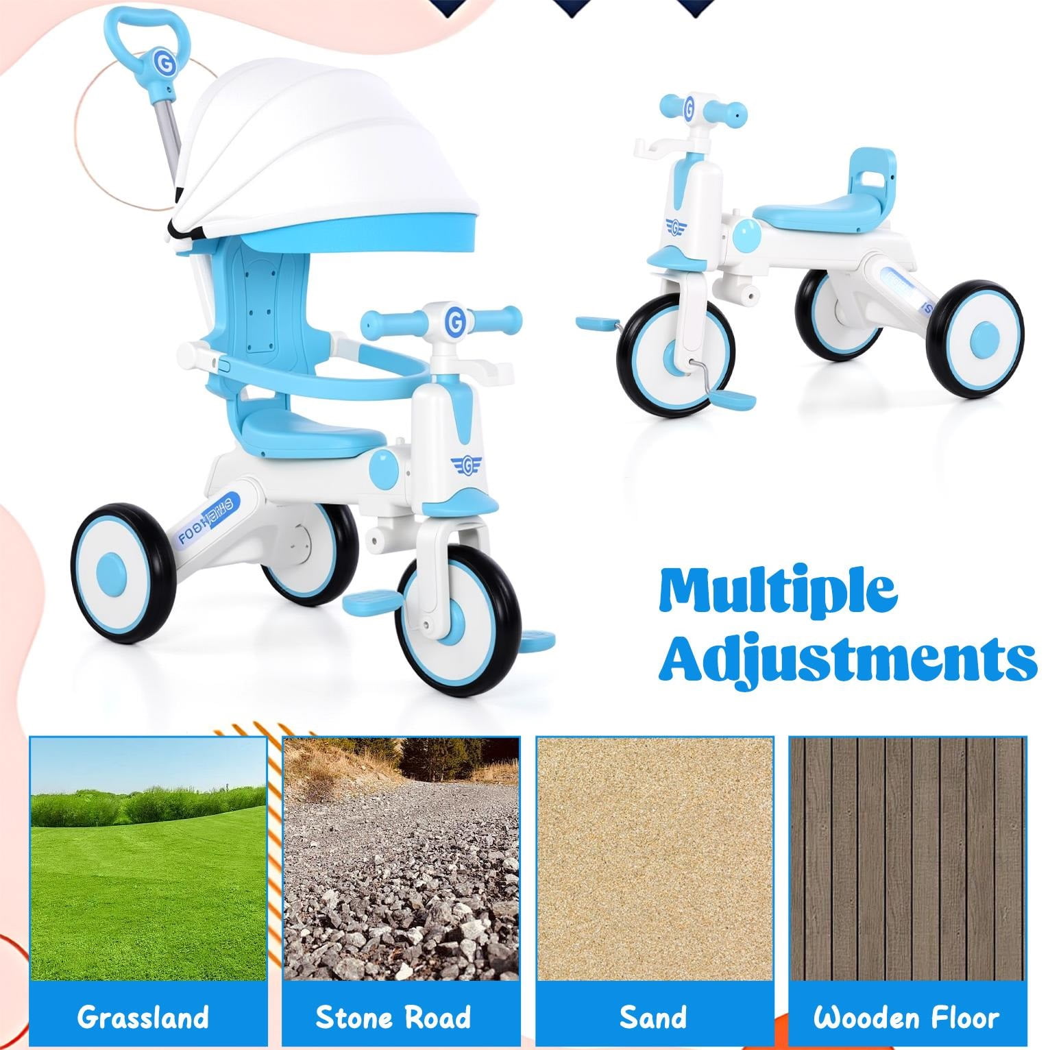 EOTVIA Tricycle for Kids, Toddler Tricycle with Light and Music, Kids Trike Beginner Tricycle with Removable Canopy, Baby Bike with Adjustable Push Handle, Toddler Bike for 1-4 Years Old Girls Boys