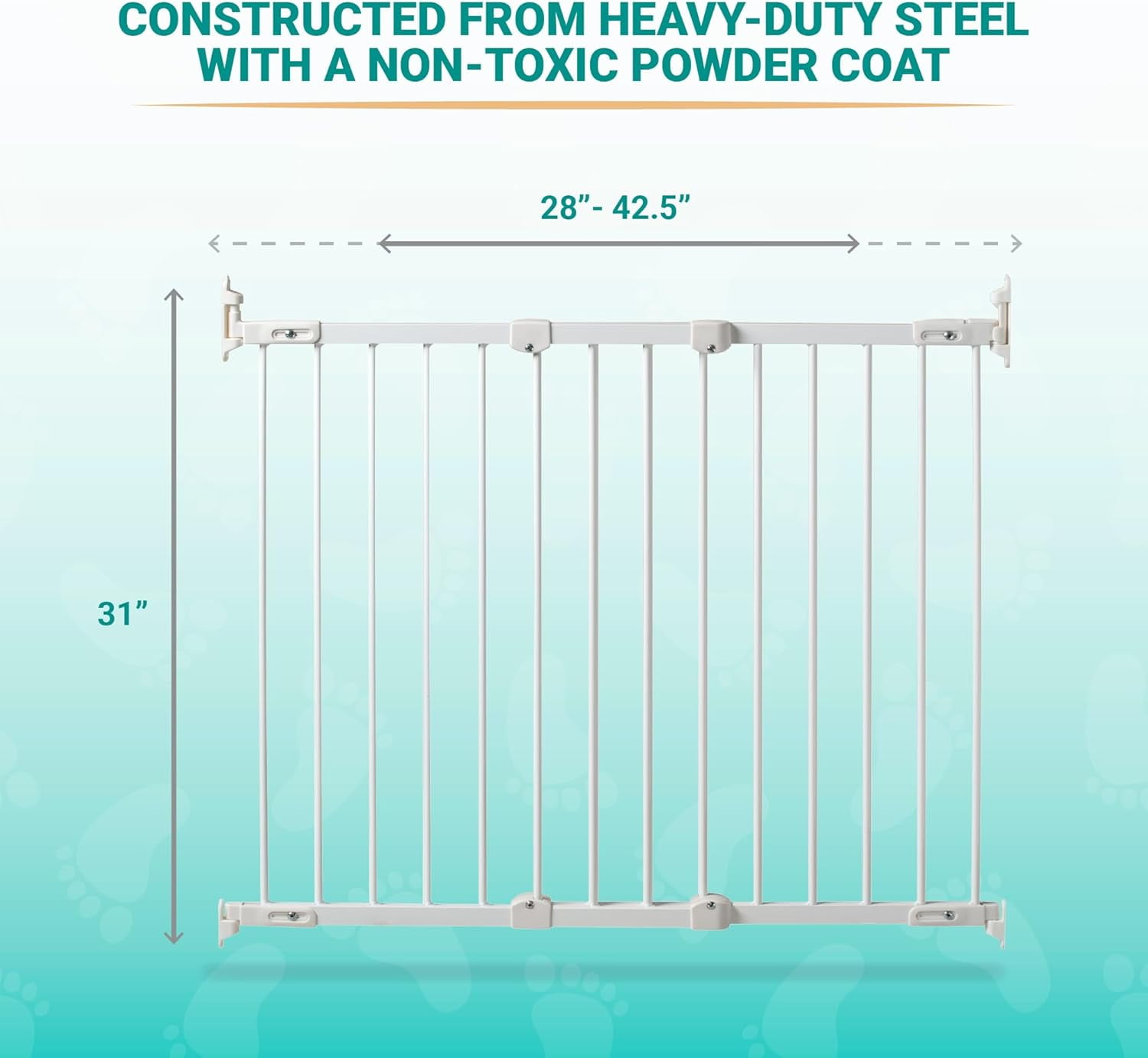 $51.56This KidCo Child Safety Gate incorporates exclusive pressure-Plus technology, which forces additional pressure on the door frame when the handle is locked after each use, providing extra stability and security. No tools are needed for installation and the gate is white. There is a bar at the bottom of all pressure mount gates that helps keep the gate in place and this bar can be a tripping hazard when placed at the top of stairs. Extensions to go with this gate are available.