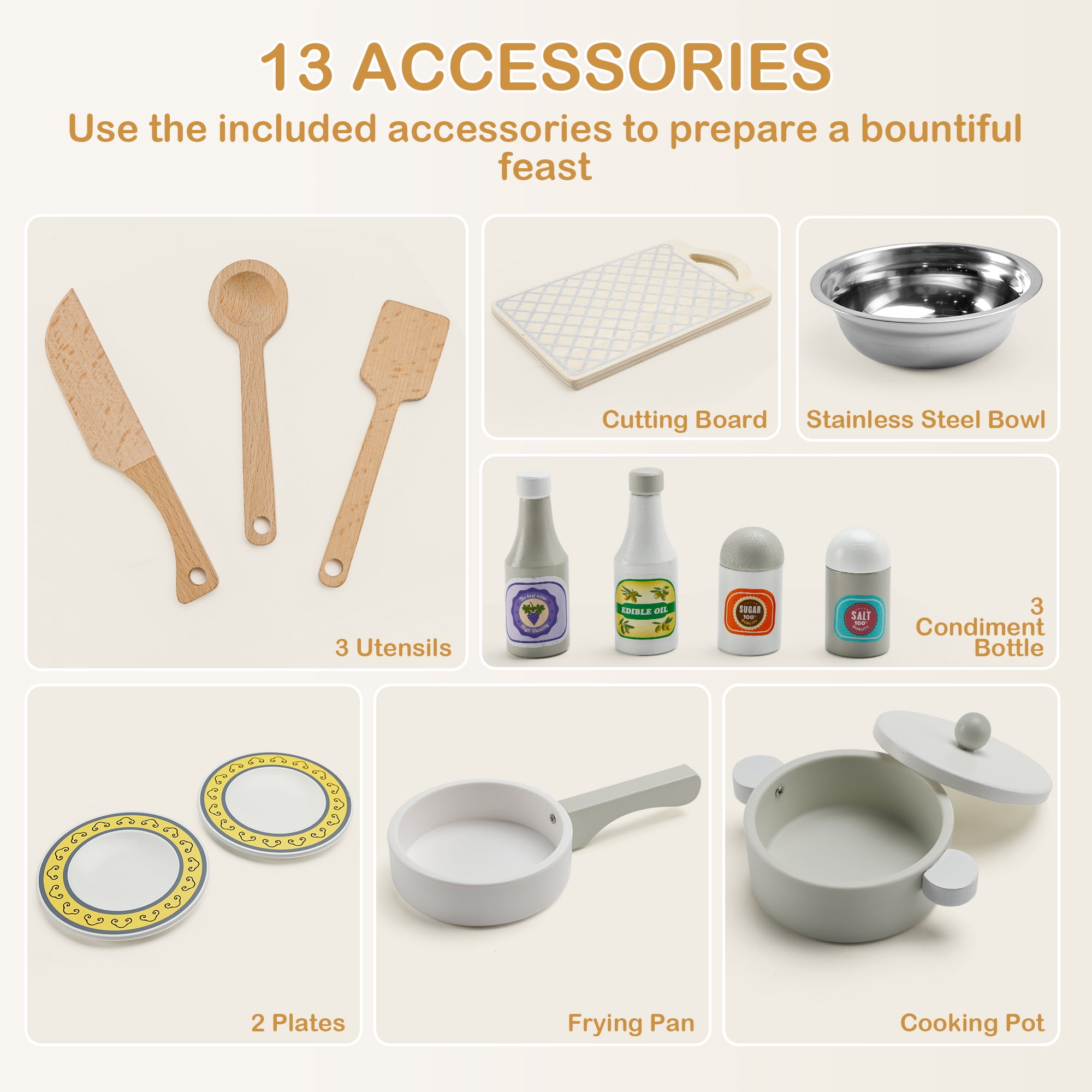 Kids Play Kitchen Set Toy, Wooden Pretend Chef Cooking Play Set with Microwave, Pan, Sink, Cookware Accessories Kitchen Set for Toddlers, Boys, Girls, Gift for Ages 2+