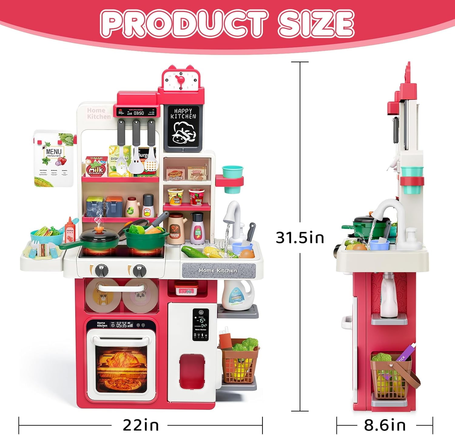 $42.99Kitchen set Pink for kids Pretend Play Cook w/ Sound, Light, Real Spray, Drawing and Water Flow, 43 Piece Accessory Set. Pretend Play Cook w/ Sound, Light, Real Spray, Drawing and Water Flow, 43 Piece Accessory Set. Simulation cooking Scene, role-play, parent-children interaction. Light music and Shinning Light. Real Spray, simulated cooking for Children. Drawing on board, children can write down the menu. The tap can gives real water, experience the joy of housework by hands-on games. Various ways of open door, as sliding and flat opening. Using basket, shelf, cabinet to increse storage space. Playing cook whit child will be fun and intresting.