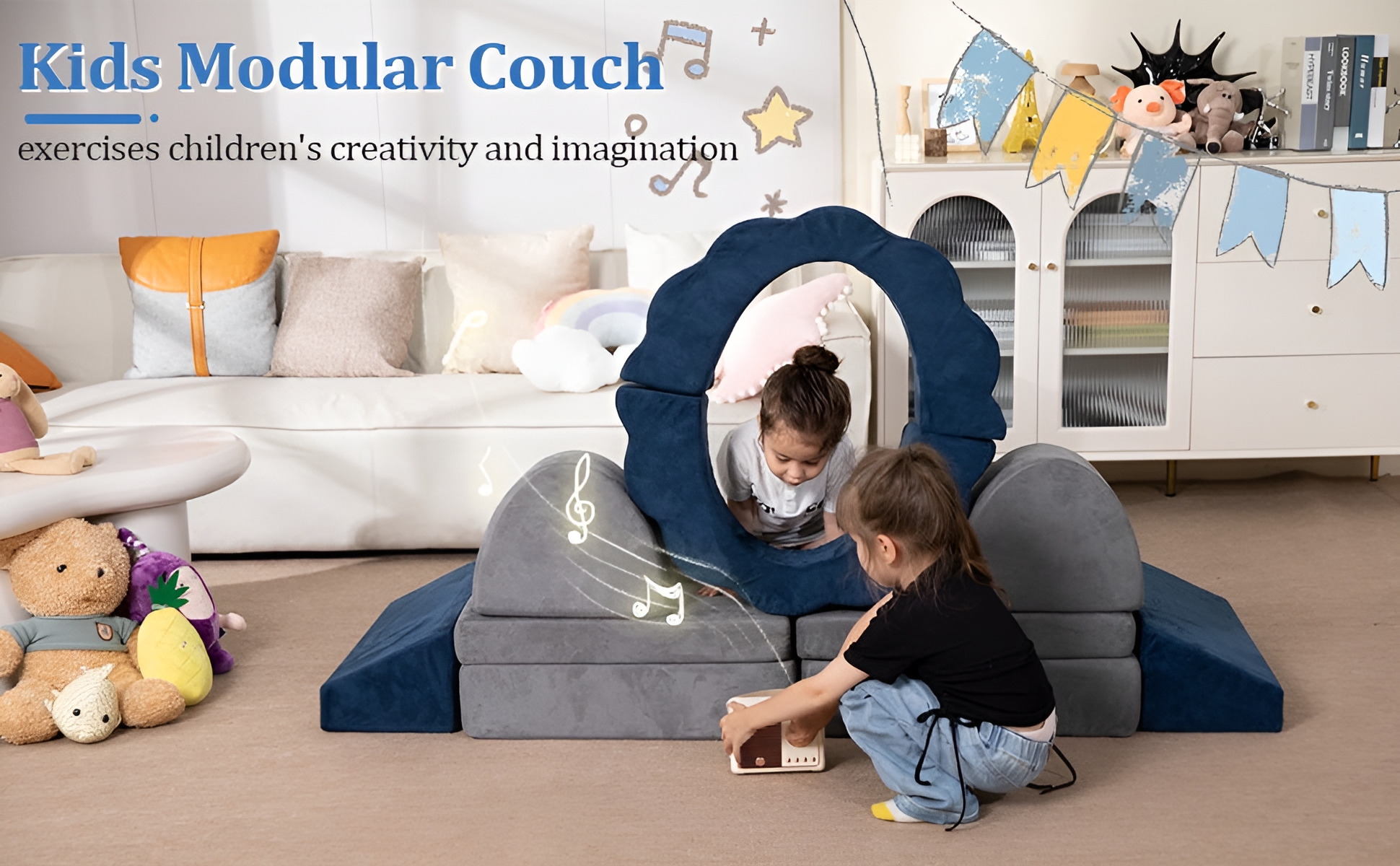 Kids Couch 10PCS, Foam Play Couch for Boys & Girls, Multifunctional Toddler Couch for Playroom, Grey & Blue