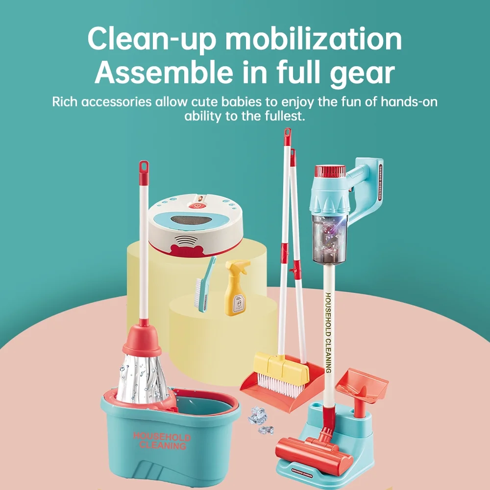 $34.39Kids Cleaning Set for Toddler Housekeeping Play Set with Robot Vacuum Toy Real Working Vacuum Cleaner Broom Mop Dustpan Mop Bucket Brush Electric Cleaning Toy Set for Kids Boys Girls with Light Features: Realistic Cleaning Playset for KidsThis kids cleaning set includes robot vacuum toy, handheld vacuum cleaner, broom, dustpan, mop, mop bucket, cleaning brush, and spray bottle, making it a perfect gift for children aged 18 months and above on Children’s Day or Christmas, ideal for role-playing and enhancing parent-child interaction. Functional Electric Vacuum CleanerEquipped with real vacuuming capabilities and 3 vacuum cleaner attachment heads, this electric vacuum cleaner enhances playtime fun. Simply open bottom to empty trash, accompanied by interactive and soft lighting to make cleaning a joyful experience for kids. Robot Vacuum Toy with Colorful LightsFeaturing intelligent omnidirectional wheels that automatically steer away from obstacles and with colorful lights, robot vacuum toy is sure to captivate children’s attention and keep them engaged in cleaning play. Miniature Mop and Bucket SetWith a realistic mop and bucket, simply add water to bucket, mop, and start mopping floor, allowing children to learn basics of household chores and become little helpers around house. Complete Cleaning AccessoriesPlus broom, dustpan, cleaning brush, and spray bottle, this cleaning set for kids provides children with a variety of cleaning tools to explore more fun in household chores and enhance their hands-on skills. Specifications: Material: ABS Compatible Age: 18+ months Vacuum Cleaner Battery: 5 * AA batteries(not included) Robot Vacuum Toy Battery: 3 * AA batteries(not included) Packing List: 1 * Robot Vacuum Toy 1 * Vacuum Cleaner 1 * Vacuum Cleaner Holder 3 * Vacuum Cleaner Heads 1 * Broom 1 * Dustpan 1 * Mop 1 * Mop Bucket 1 * Spray Bottle 1 * Adapter