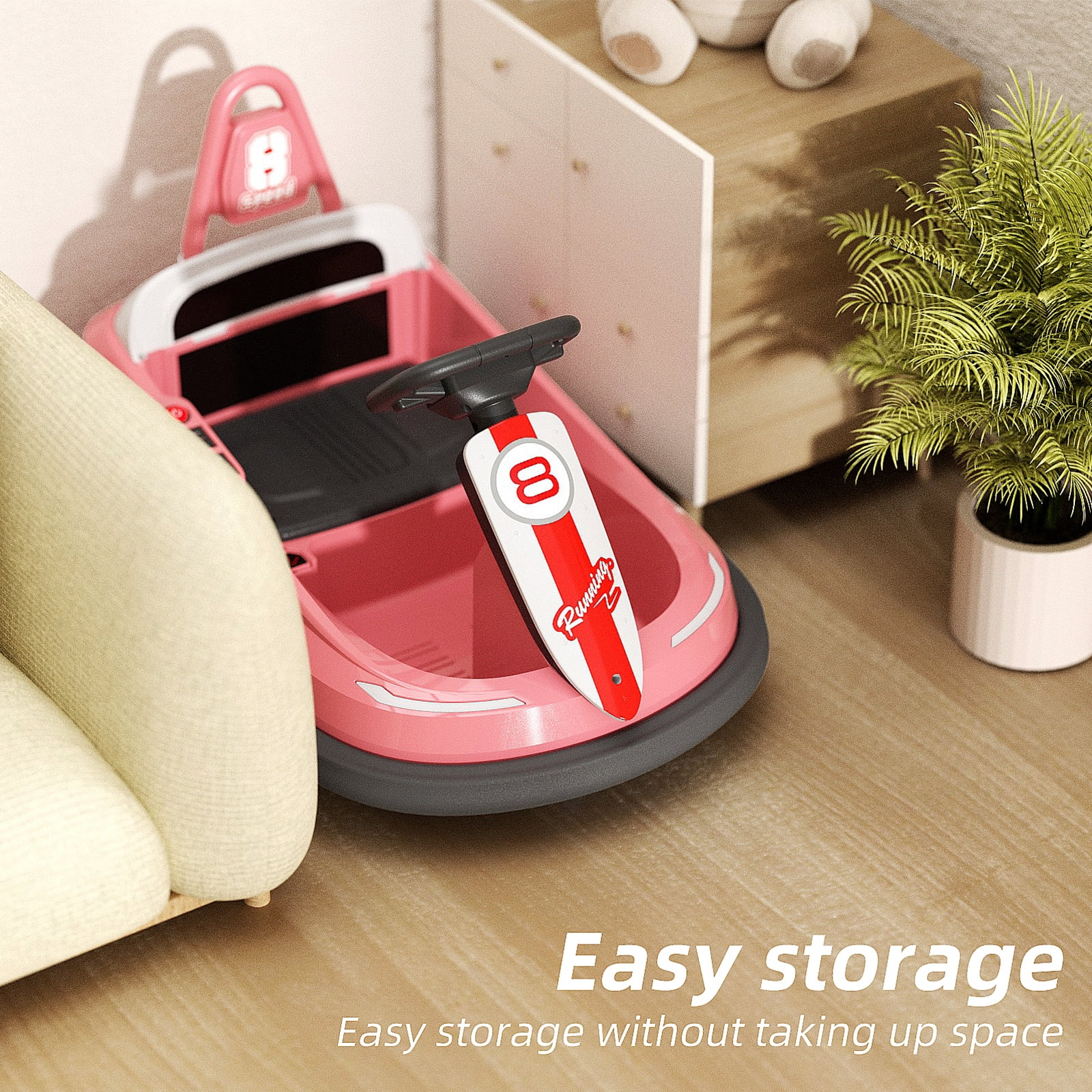 $82.55Description: Ride, Bump, Race, Spin: The most advanced and toddler-friendly bumper ride-on car yet! Engineered for maximum performance, fun, ease of use, and safety. Built from quality materials with cushioned rubber bumpers to protect walls and furniture. Authentic Design: This toddler bumper car offers an exhilarating 360° turn. This bumper car is designed to replicate a real amusement park bumper car, this baby bumper car brings the thrill of the park to your doorstep. Amazing Features: Rechargeable (charging cable included), full 360° spin, 2-speed settings (0.9-2 mph), blinking lights + music, 6V battery, customizable stickers, and very easy to use. Great Gift for that Little Child:It’s the perfect birthday or holiday gift or any other occasion. They will play endlessly and have a blast! Specifications: Color: White, Blue, Black,Red.Green,Pink Material: Polypropylene Speed: 0.9 – 2 mph Battery: 6V 4.5AH x 1 Charge Time: 8-12 hours Run Time: 50 minutes Weight Capacity: 66lbs Suitable Age: 1-4 Years Package includes : 1 Set Kids’ Electric Vehicles