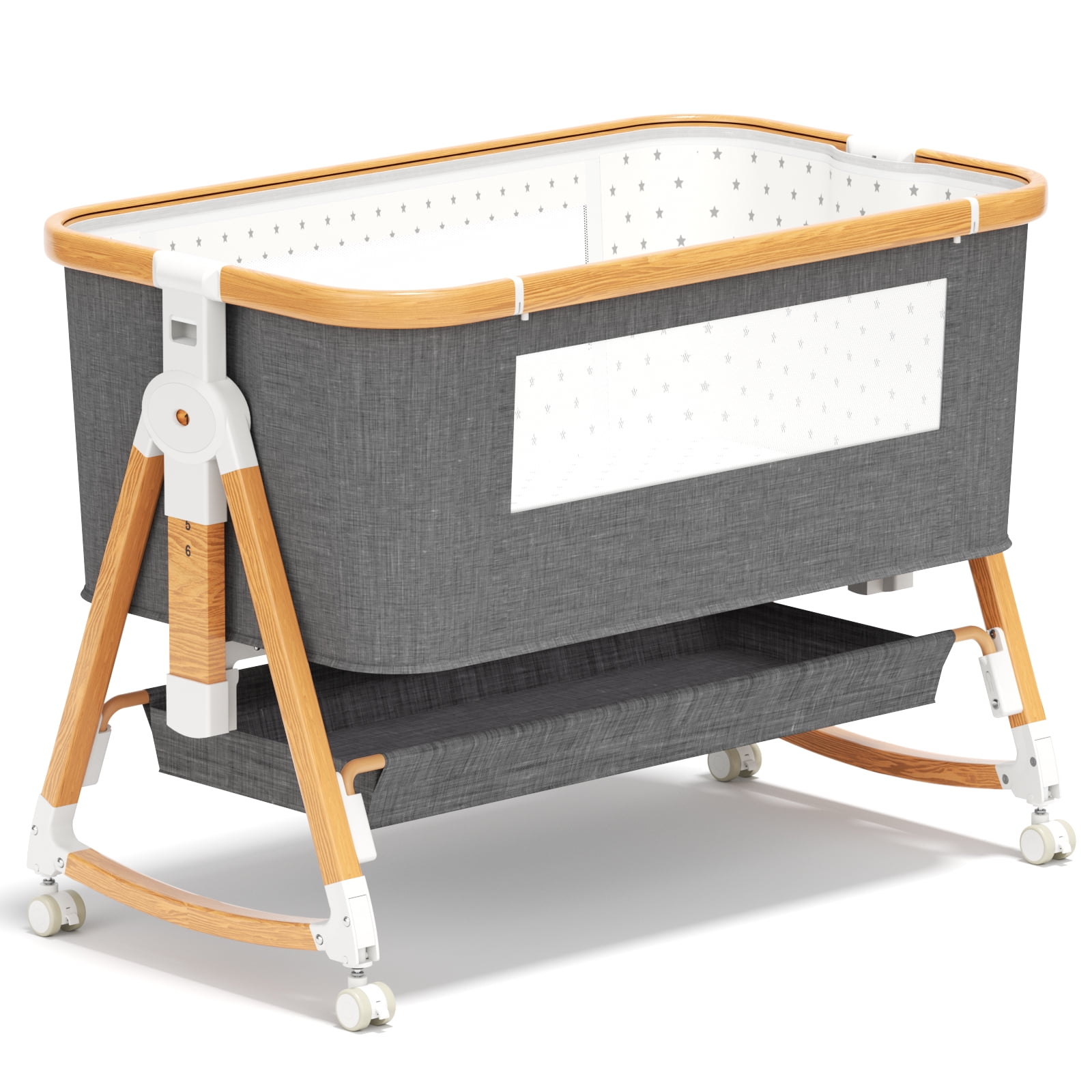$120.39Features: – Baby’s Small Private Space: Perfect For Any Incoming Newborn – Material Safety: Detachable washing nylon cloth + peach skin; sponge and wood board – Safety and Firmness: Strong and rust-resistant aluminum alloy frame ensures long service life. – More Reasonable Structure Size: Firm triangular structure and non-slip foot pads ensure high stability and baby’s safety. – Independent Space: It’s also convenient for mothers to take care of the baby at night. Specifications: 1) Color: Grey 2) Gender: Unisex 3) Applicable Age: 0-8 Months 4) Product Dimensions: 36.6 x 21.7 x 28.34 inches 5) Mattress size: 85*49*3 cm/33.4*19.3*1.2 inch 6) Certification: CPC & CPSC & CPSIA & ASTM,Flatness Test: Less than 10 degree Package includes: 1 x baby bassinet 1 x mattress with a sheet 1 x mosquito net 1 x Storage Basket 1 x Travel Bag NOTE: Safety is our top priority! The bassinet sleeping surface incline angle at 5° and meets CPSC standards for Baby Bassinet.Certified with ASTM F2194-16e and ASTM F2906-13. Comply with all CPSC and CPSIA standards. So you can rest assured your baby is safe and sound.