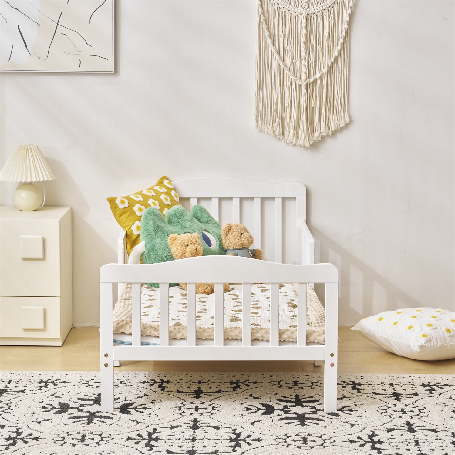 $78.25Original price was: $78.25.$60.19Current price is: $60.19.Introductions: The Wooden Baby Toddler Bed Children Bedroom Furniture with Safety Guardrails is the choice for transition from crib to big-kid bed, definitely a must-have for any growing child. It features an simplistic, elegant design that brings a classic look to any bedroom. Guardrails on either side of the bed provide added security to guarantee that your little one will be safe throughout the night. The bed is 8 inches from floor, making climbing in and out of bed safe and convenient for little kids. Made from wood, this toddler bed is stable and durable so you can rest assured to count on it. Features: Solid Wood, Contemporary, Bed for your Toddler Toddler Bed is set at preciously the right height Designed so that Your Toddler can Safely get in and out of bed Toddler Bed Comes Complete with Two Side Safety Rails This toddler bed features two side safety rails, sits low to the floor for ease in getting in and out of bed and reinforced for stability with a center leg Specifications: Dimensions: 53″ x 30″ x 24.5″ (L x W x H) Color: White Material:Pine Wood & Plywood Weight: 20.94 lbs / 9.5 kg Gender: Boys, Girls Age Group:Toddler Package Includes: 1 x Baby Toddler Bed 1 x Manual
