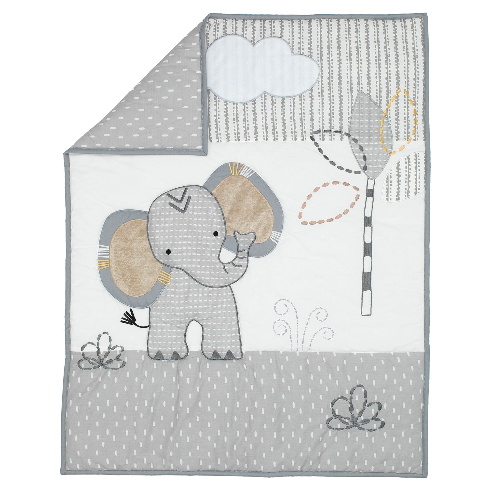 Lambs & Ivy Jungle Safari Elephant 3-Piece Mini Crib Bedding Set – Gray/White