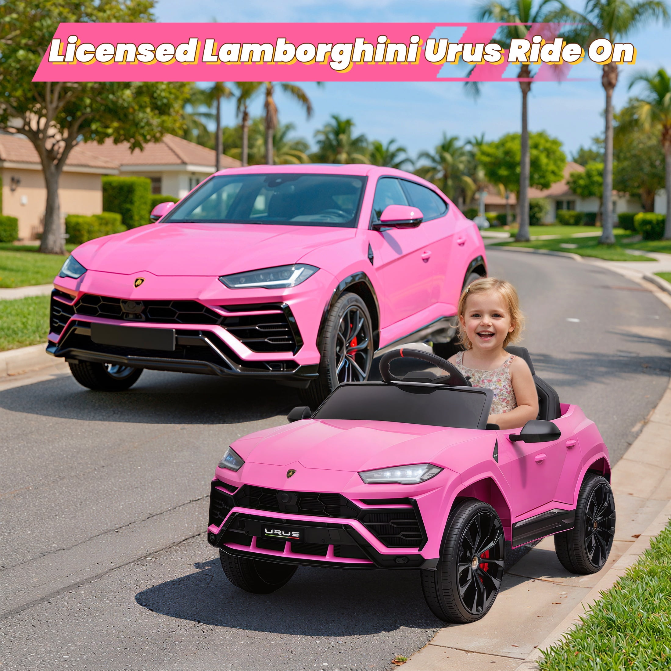 Lamborghini 12V Kids Ride On Car with Remote Control, Battery Powered Electric Car with 4 Wheels, USB, Ride On Toys for 3+ Years Olds Girls Boys, Pink