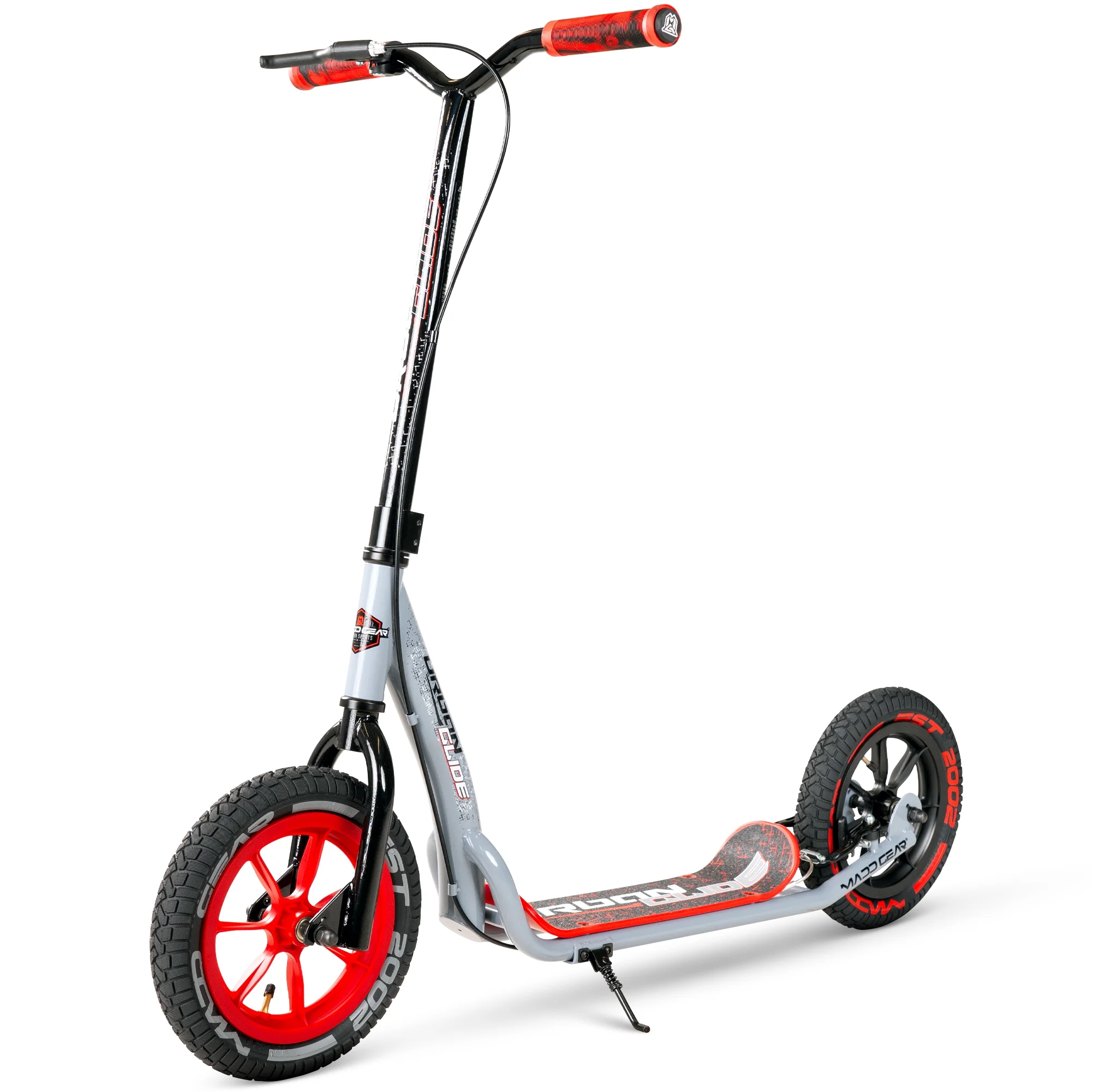 Large Kick Scooter for Adults & Teens – 12″ Air-Filled Tires, Wide Deck, Handbrake, Kickstand – Madd Gear Urban Glide – Grey / Red
