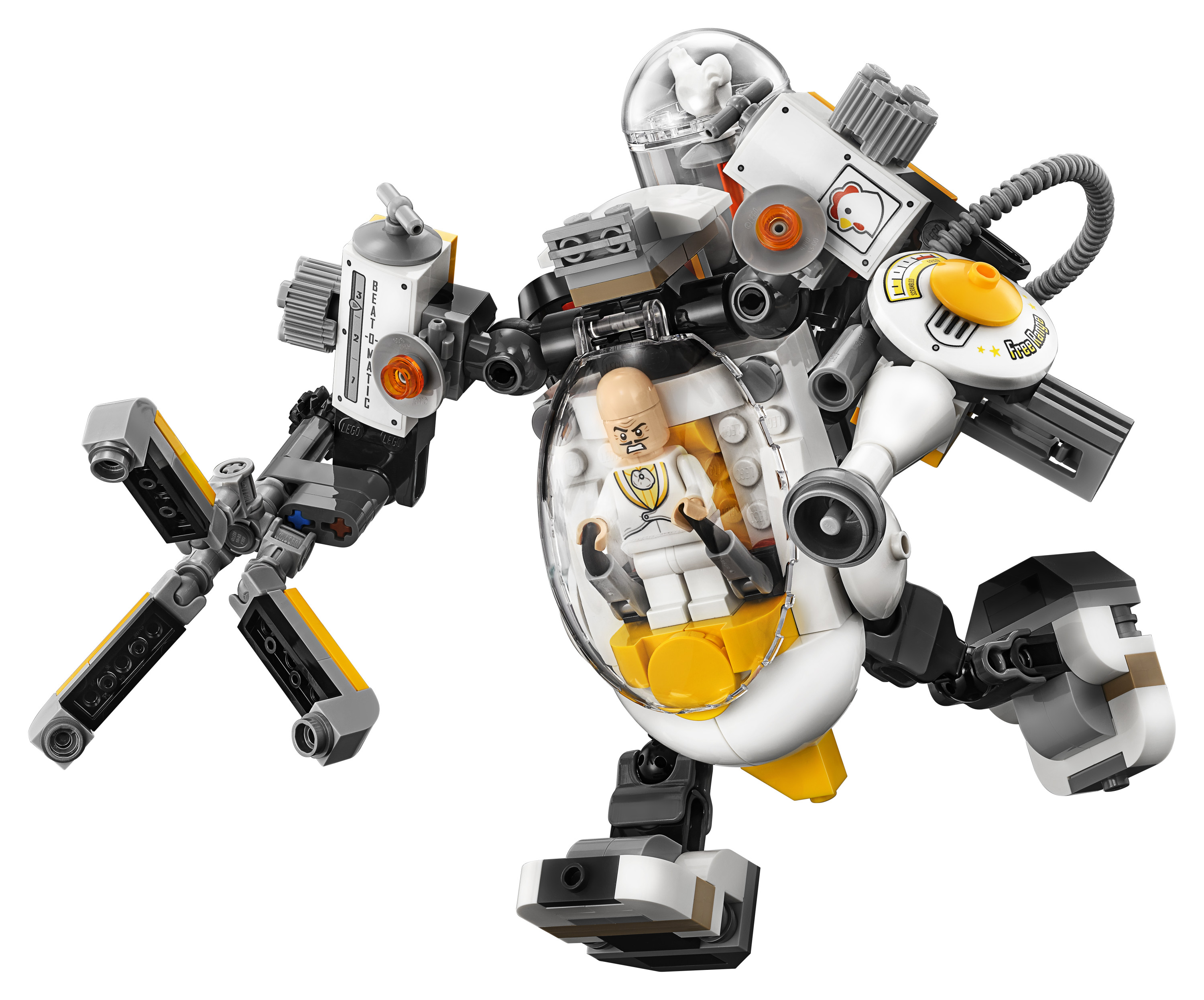 $81.69Help Batman™ fend off Egghead™ and Condiment King’s food-firing attacks with THE LEGO® BATMAN MOVIE: Egghead Mech Food Fight set. The Egghead Mech features an opening egg-shaped minifigure cockpit, posable arms and legs, a fried egg disc shooter, spinning and grabbing whisk/claw and a canister containing chicken and egg elements. Condiment King is armed with ketchup and mustard stud shooters. This LEGO Batman toy includes 3 minifigures.