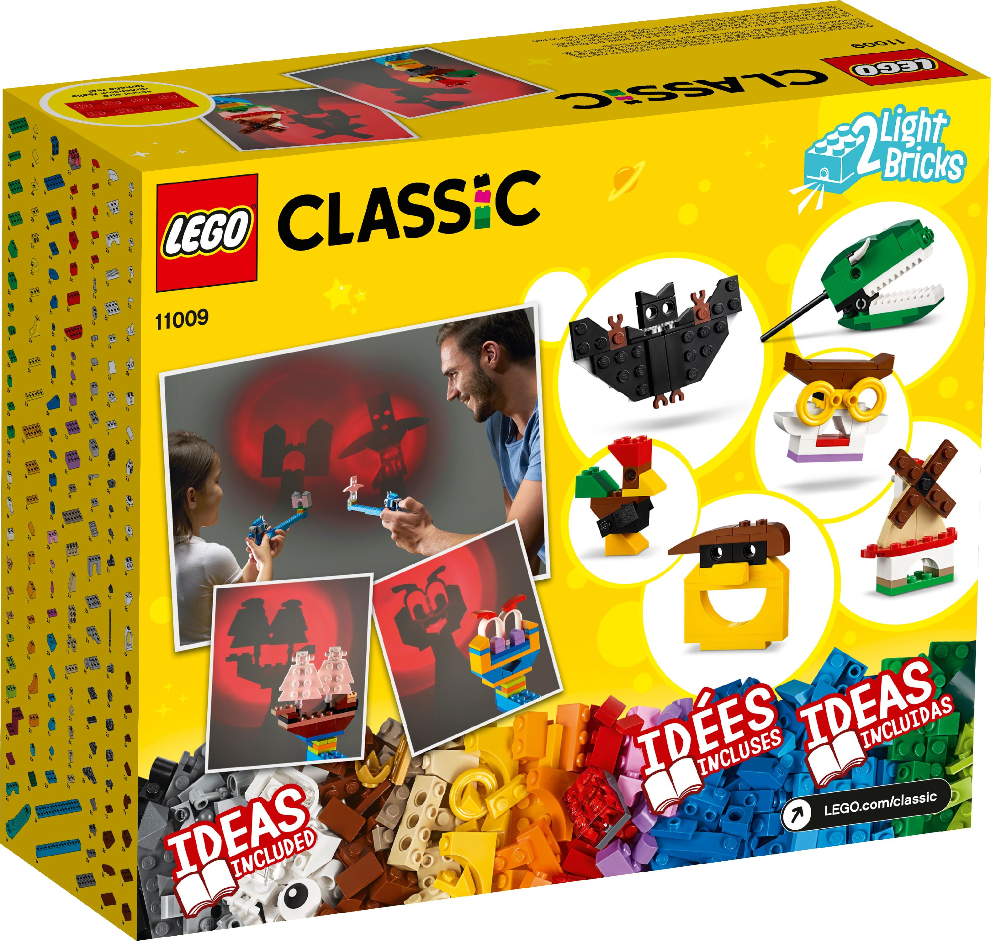 $37.80Kids can get doubly creative with this fun LEGO set. First by building cool models, and second by transforming them into shadow puppets using Light Brick Shadow Casters! From building bricks to shadow plays Kids aged 5 and up will be captivated when their mini-models become cool shadow images! Imaginations will run wild as images move, shrink and enlarge, inspiring endless storytelling activities. With 12 fun LEGO toys for kids to make – a castle, face, princess, bat, rooster, crook, pirate ship, owl, ghost, windmill, shark and a dinosaur – plus extra bricks to build creations of their own, anything can happen! And, when the 2 Shadow Casters come into action, the shadow plays never stop! Kids build skills as they design, display and create! LEGO Classic sets put ideas and inspiration into young hands. Simple guides for the fun models soon get kids started with their indoor activities. As they discover the joy of constructing creations of their own, they acquire skills that are key to future success.