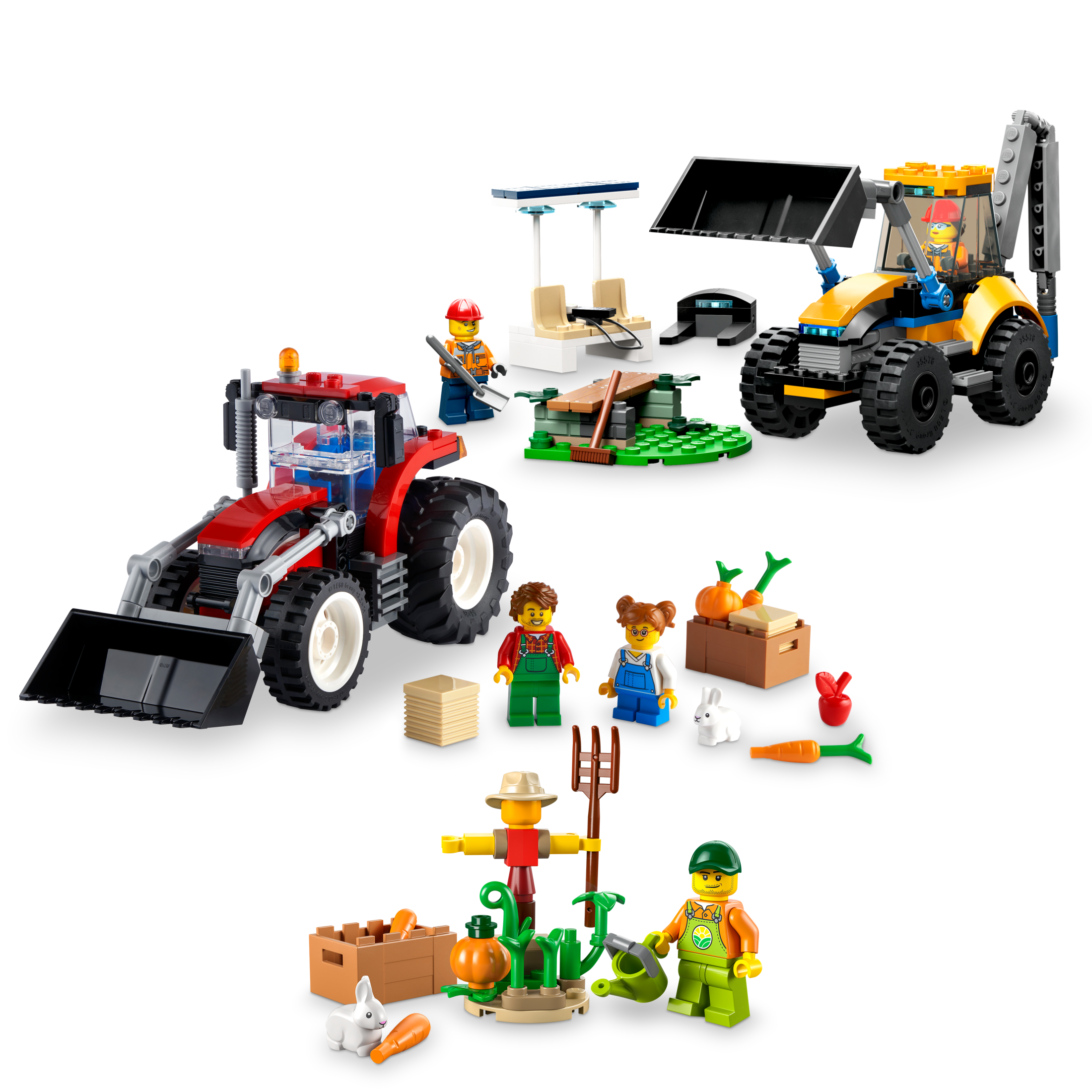 LEGO City Big Wheel Gift Set, 2in1 Tractor and Construction Digger Building Toy Sets Plus Farm Garden & Scarecrow Bonus Pack, Great Gift for Boys and Girls Ages 5 and up, 66772